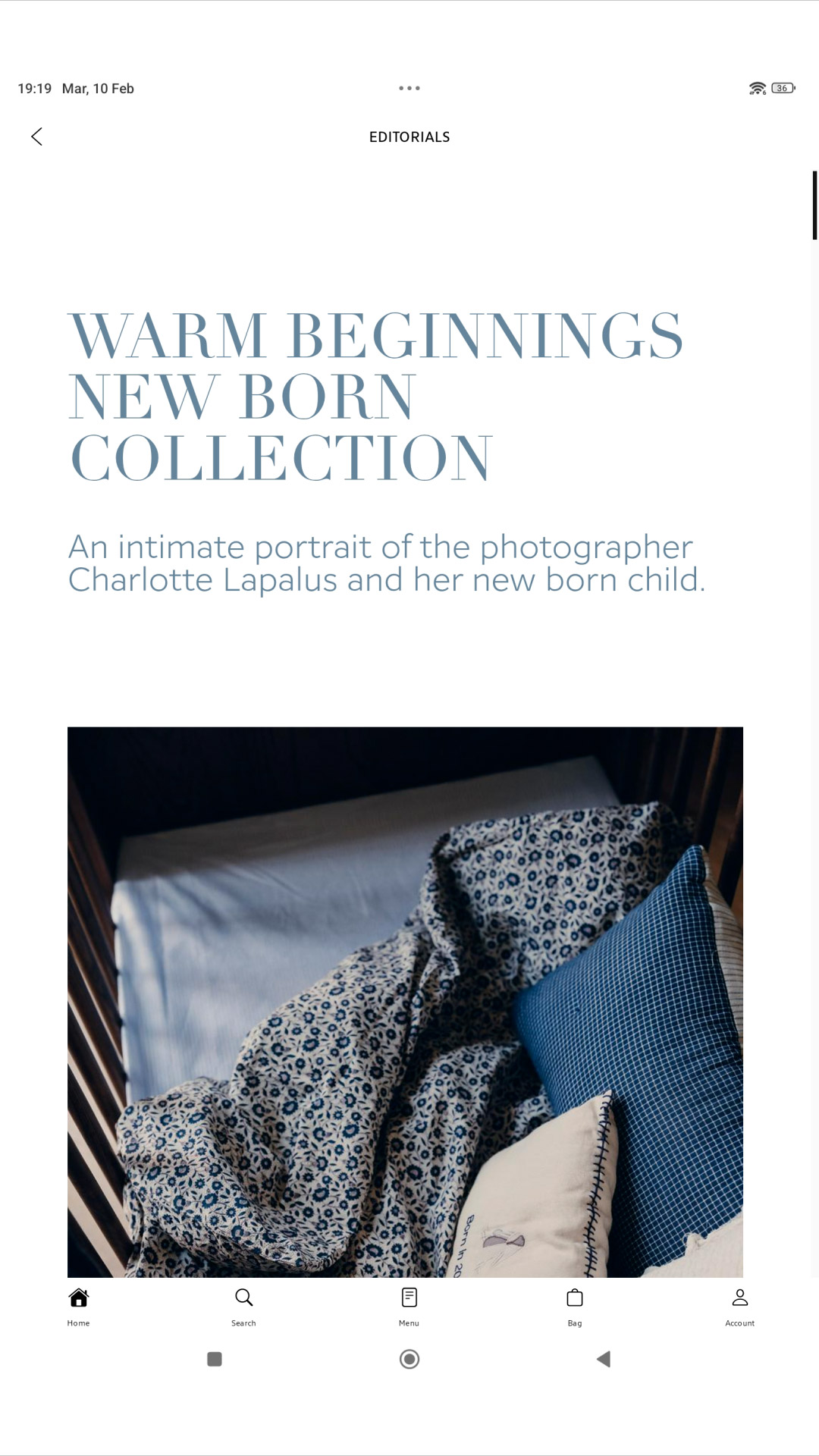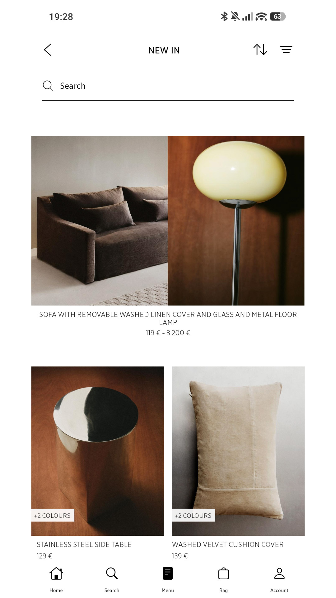 In the Zara Home app, you can find a wide variety of products organised into different categories:
