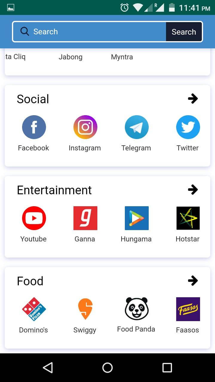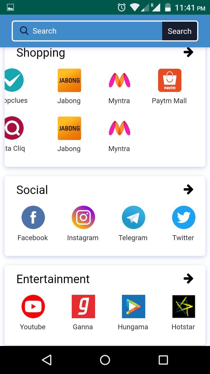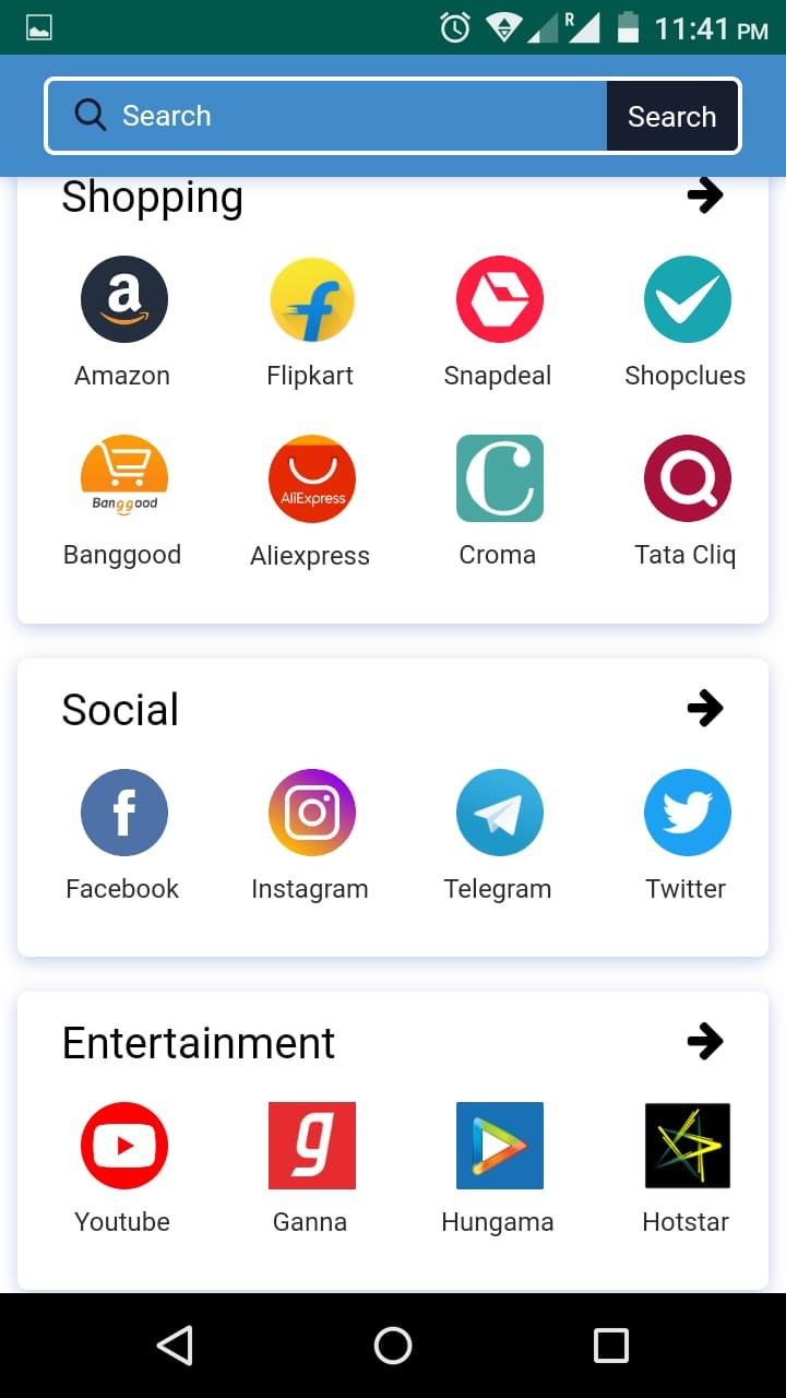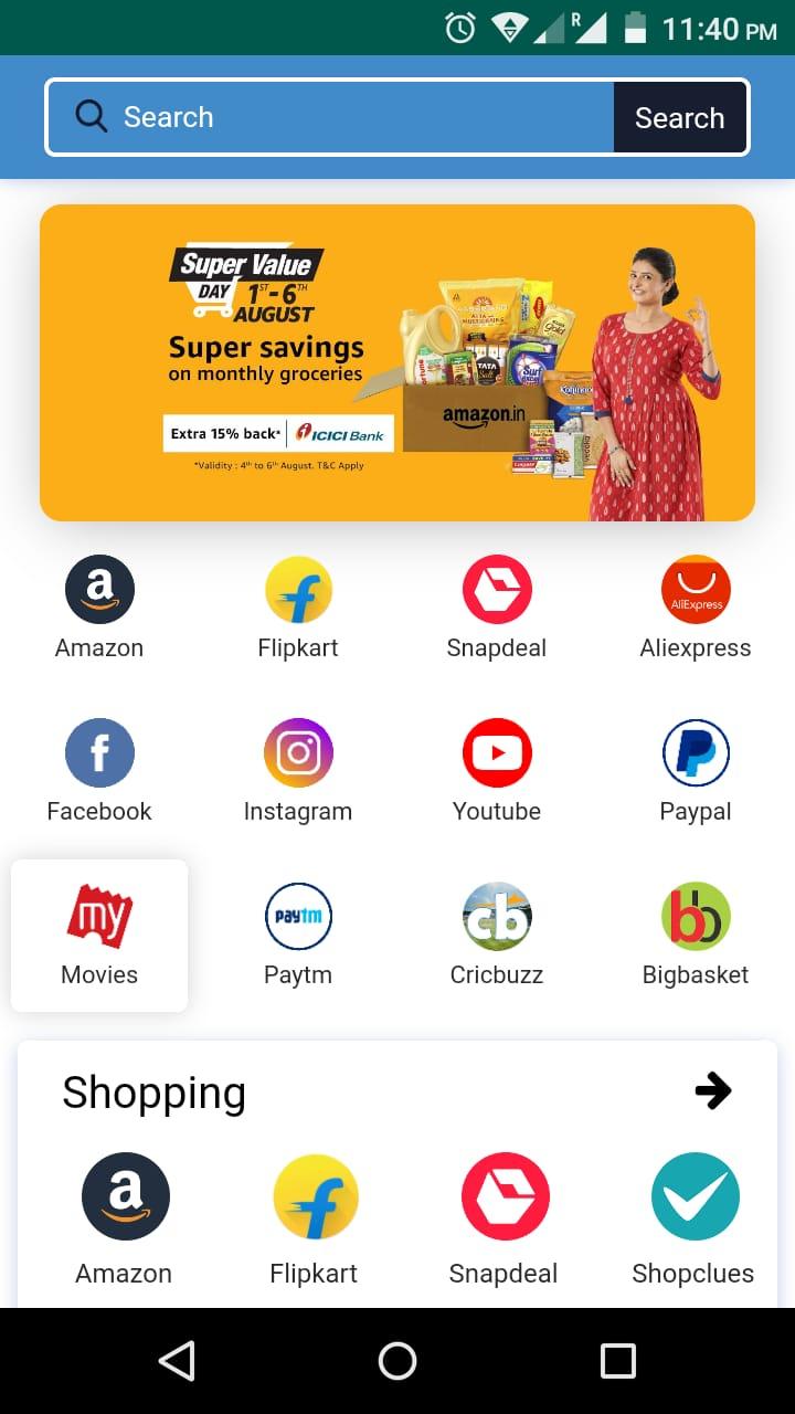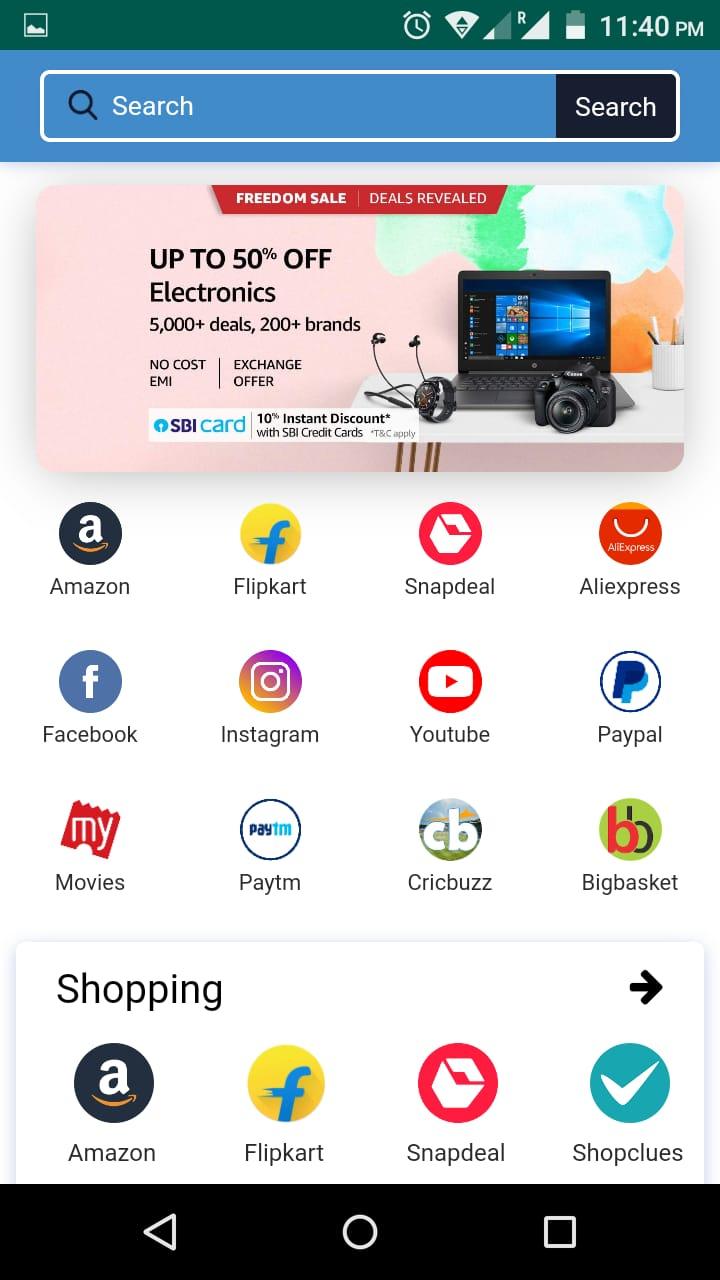 Welcome to All in One App - All in one Online Shopping app is a shopping Place for more than 1000+ online stores. Some of the major online shopping sites Amazon, Flipkart, Paytm, TataCliq, Snapdeal, Myntra, Ebay, jabong, Moglix, Shopclues, zivame, abof, Ajio, and Much more…