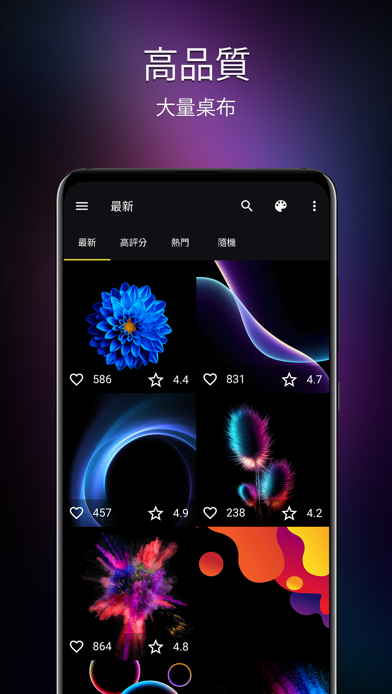 精选4K/HD壁纸,支持颜色与标签搜索,定时自动更换