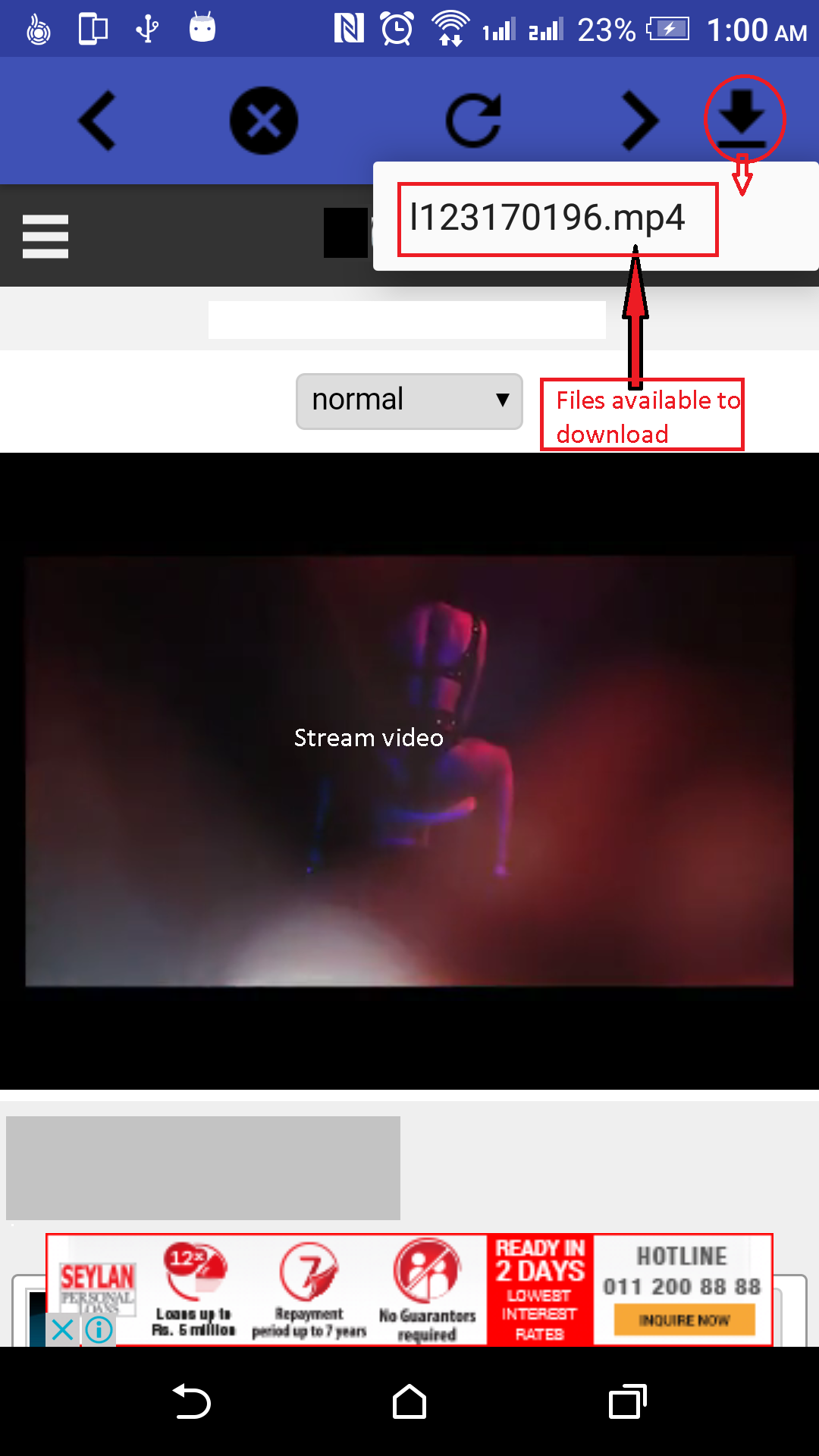*When you play a stream video or a audio.browser will show a message that "A File ready to download".Then click on download icon.then you will be able to see available files to download .click on the file .then it will be started to download
