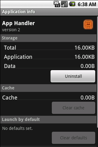 App Handler offers a quick way to access app settings/ app management. + Uninstall App within 3 clicks + Clear App Data/ App Cache + Invoke Force Stop on App + Information about App Permissions/ App Requirements App Handler is a useful add-on for Android.