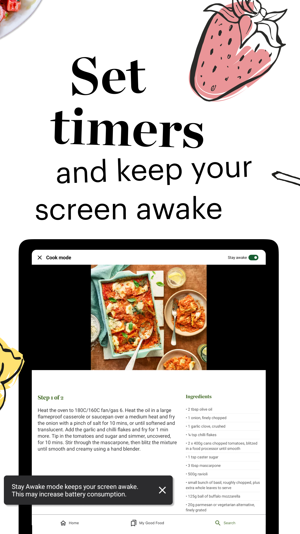 - 使用“烹飪模式”,在烹飪過程中將食譜顯示在螢幕上