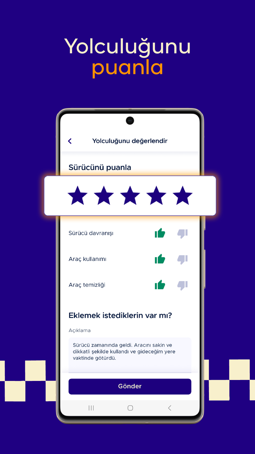 Senin için yeni bir özelliğimiz var: İndirimli saatler! Bu özellik sayesinde günün bazı saatlerinde indirimli yolculuk fırsatı sunuyoruz. İndirimli çağrını sürücüye iletiyoruz. Kabul ederse eşleştirme sağlıyoruz. Uygulamanı kontrol ederek indirimli saatleri yakala. Gideceğin yeri seç, indirimi gör. Varış noktana ulaştığında indirim uygulansın!