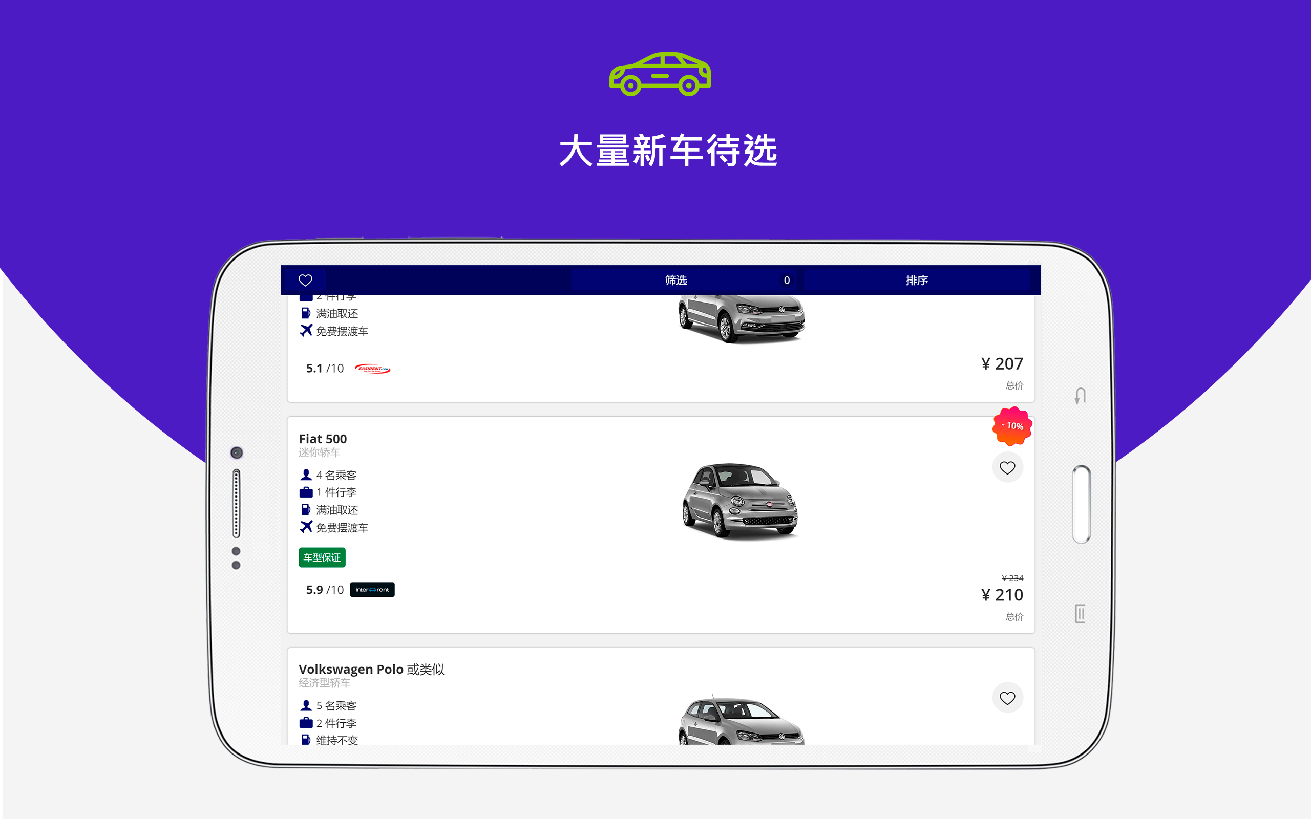 我們進行價格比較,並向您提供最佳的汽車租賃交易服務。超過4000家歐盟的汽車租賃代理商被匯聚在一個統一的、方便使用的預訂系統中。在這裡您能夠從流行品牌那裡獲取獨家價格和令人難以置信的高達70%的折扣。