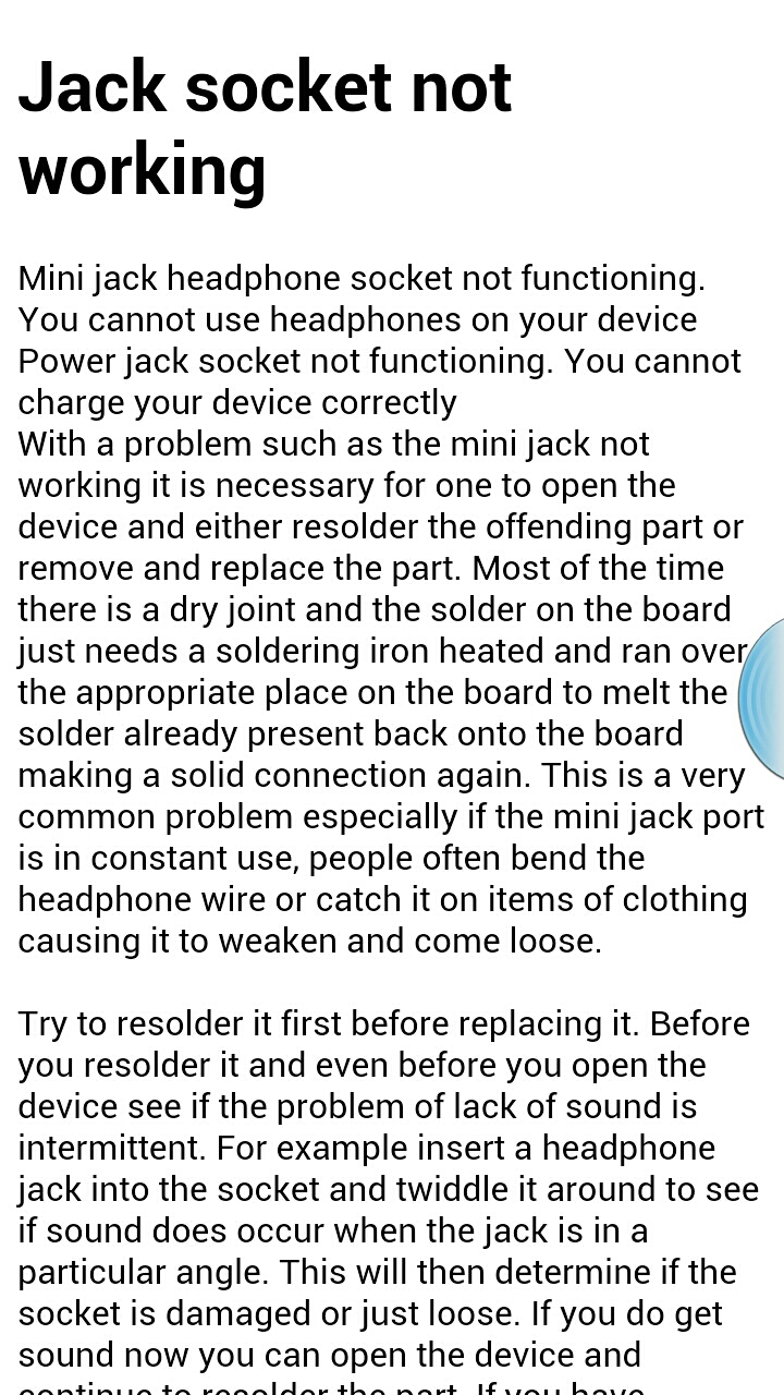 Mini jack headphone socket not functioning. You cannot use headphones on your device