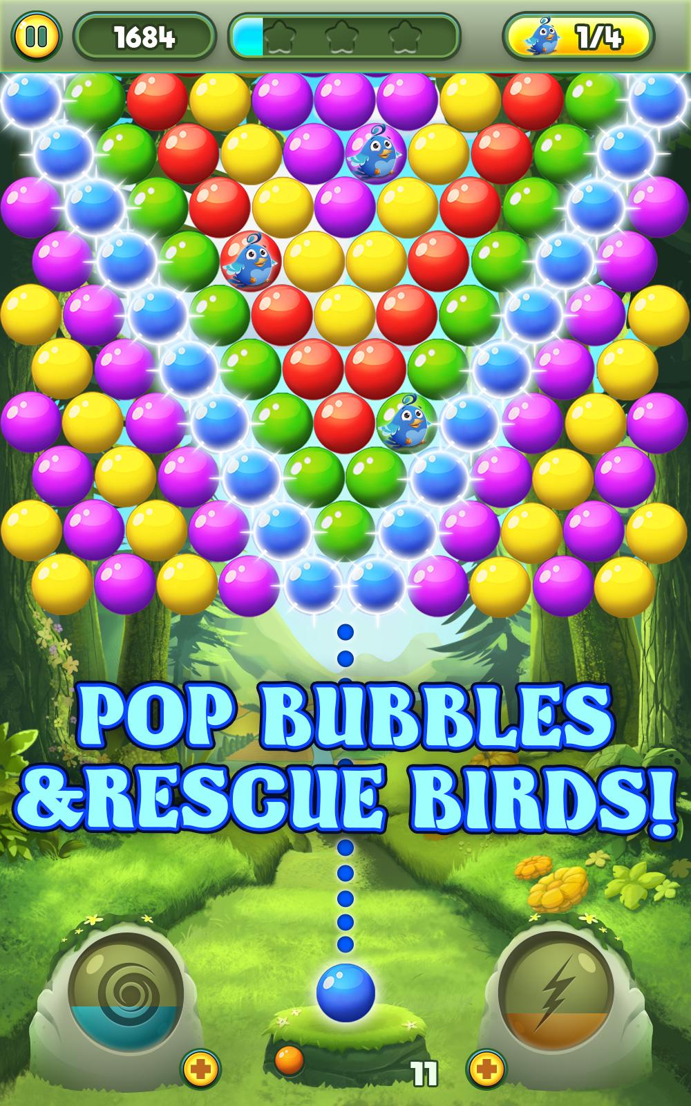 Play the fun bubble puzzle game for free! Match colors and shoot all the bubbles to rescue the cute blue birds! You’ll get addicted to this fun game in no time! Enjoy this fun pastime game which is completely addictive and fun. Play as long as you want and whenever you want. Get Bubble Bird Blast for free from Google Play and start popping these bubbles today! JOIN THE FUN ADVENTURE IN THE JUNGLE! •Your target is simple: Pop all the colorful bubbles and complete over 1000 amazing puzzle levels. •Tap on screen to drag the laser aim and lift it to shoot the colorful bubbles. Match at least 3 bubbles of the same color to burst the combination and win points. Rescue the cute blue birds by blasting the bubbles that trap them! •Keep in mind: the fewer shots you use to clear a level, the higher score you’ll get. You can swap bubbles for free, just tap on the bubble to change its color! •Reach top scores and earn awesome boosters that will help you pass hard levels and complete the different challenges. *** HIGHLIGHTS *** Hundreds of well-designed levels, each with unique challenges and fun puzzles! Easy to pick up and play! Unlock powerful boosts that will help you with challenging levels. Bright, colorful effects and designs. Go on an adventure in the bubble jungle! Free to play and super fun. Pop 7 bubbles in a row to get a fireball that will burn up bubbles on the way. Drop 10 bubbles or more to get a bomb that will take out surrounding bubbles. Download for FREE now and join the fun! Get ready, aim and shoot bubbles!