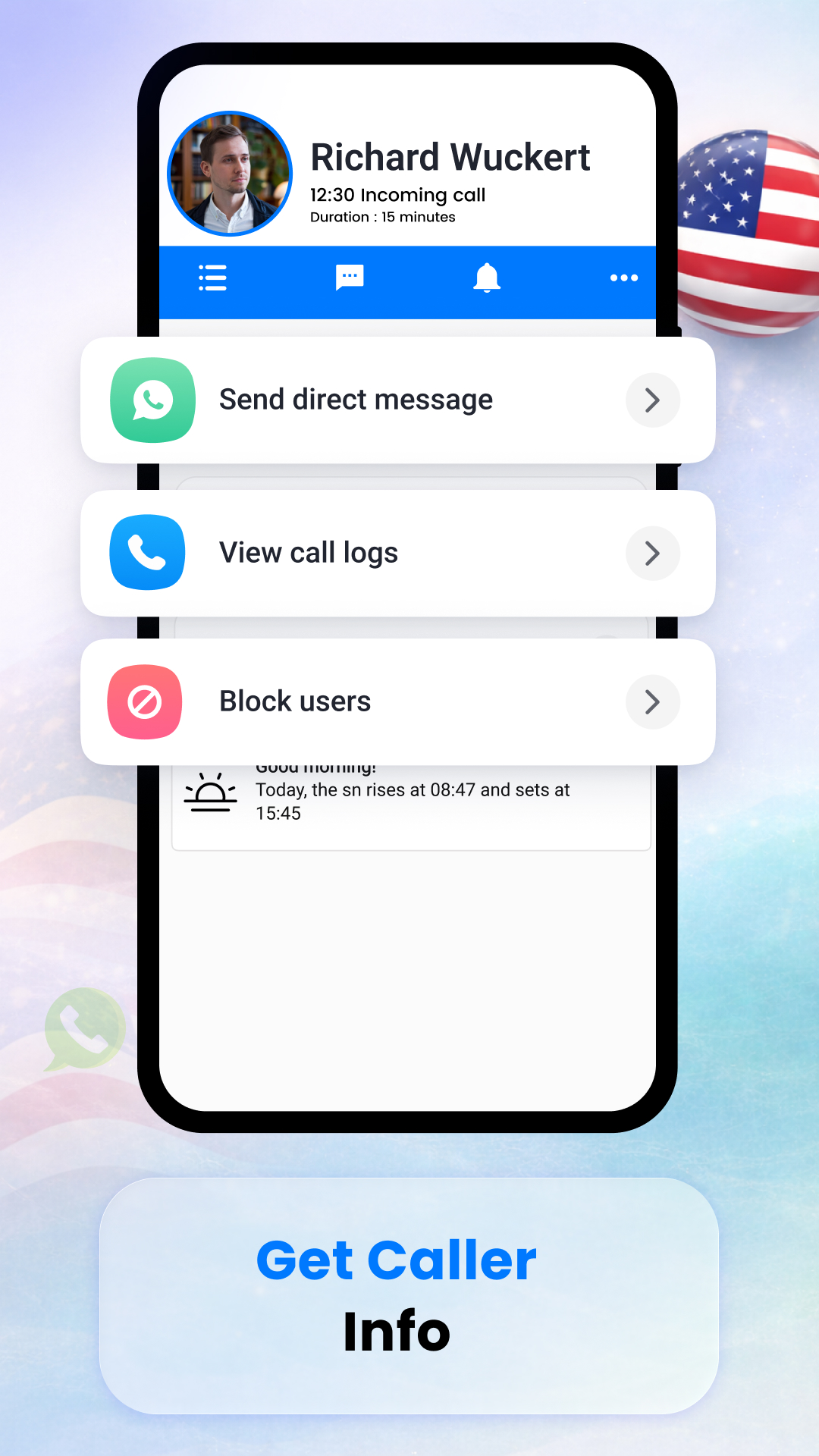 • Instant caller info on incoming calls like a call app