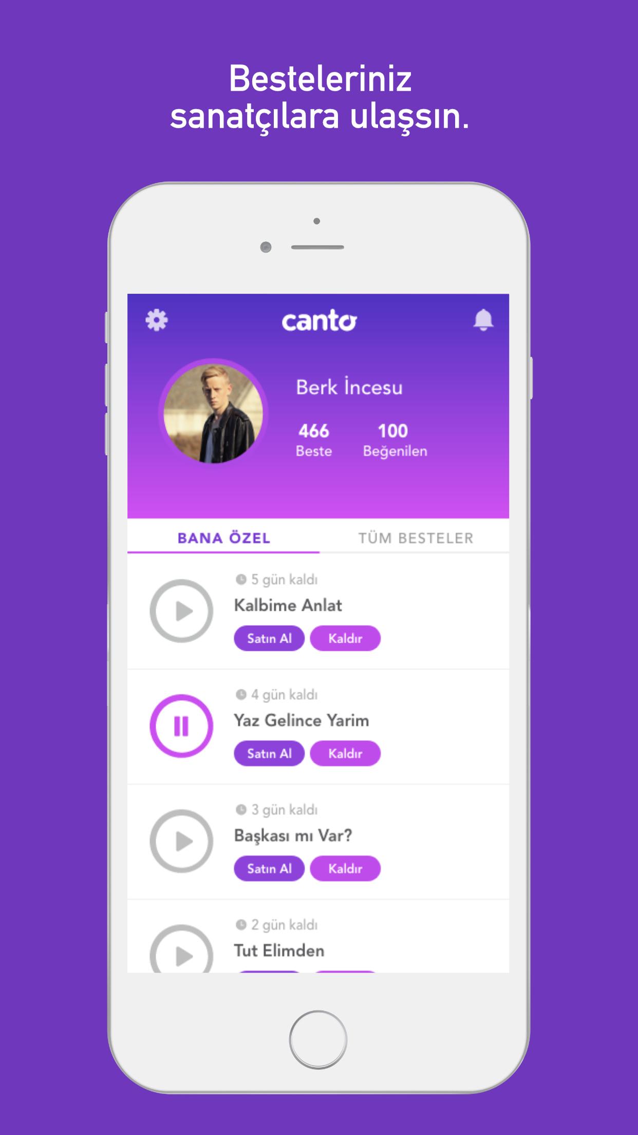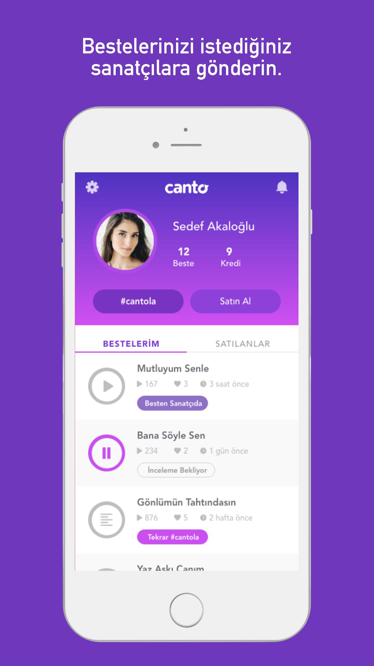 Canto ile gönderdiğiniz besteleriniz, tanınmış sanatçılar tarafından takip edilir ve değerlendirilir. Besteleriniz olumlu bir değerlendirmeye tabi tutulursa, telif hakları ve bestenizin satışı için görüşmeler yapılır.