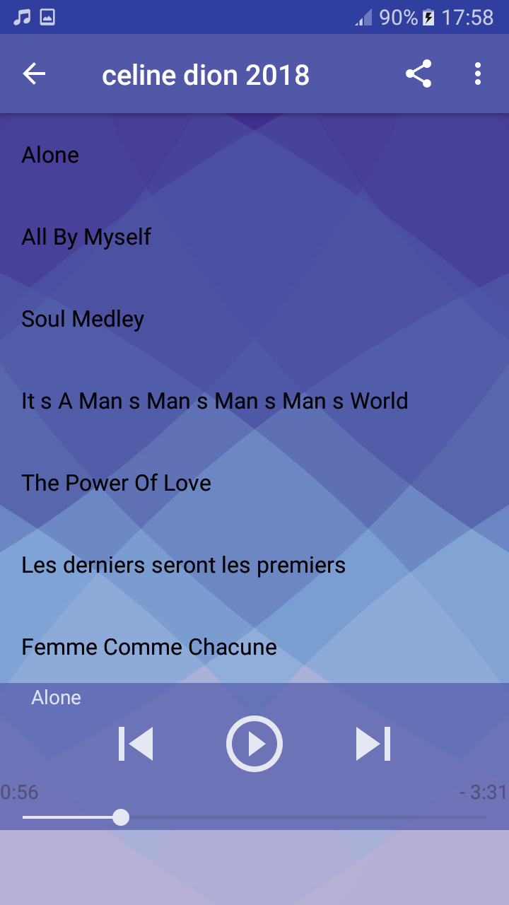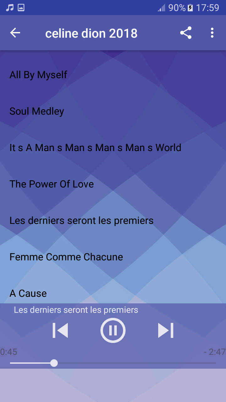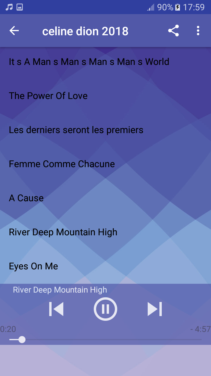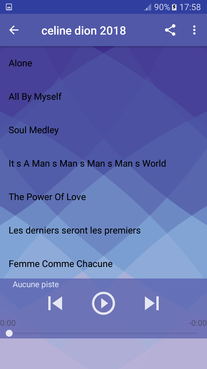 Celine Dion, born Céline Marie Claudette Dion; 30 March 1968) is a Canadian singer and businesswoman. Born into a large family from Charlemagne, Quebec, Dion emerged as a teen star in the French-speaking world after her manager and future husband René Angélil mortgaged his home to finance her first record. Dion first gained international recognition in the 1980s by winning both the 1982 Yamaha World Popular Song Festival and the 1988 Eurovision Song Contest where she represented Switzerland. Following a series of French albums during the 1980s, she signed on to Epic Records in the United States. In 1990, Dion released her debut English-language album, Unison, establishing herself as a viable pop artist in North America and other English-speaking areas of the world. Top List Celine Dion : Opening I Drove All Night The Power Of Love Taking Chances It s All Coming Back To Me Now Because You Loved Me To Love You More New Mego s Flamenco Eyes On Me All By Myself Shadow Of Love Alone My Love The Prayer Soul Medley It s A Man s Man s Man s Man s World Love Can Move Mountains River Deep Mountain High My Heart Will Go On A Cause Because You Loved Me Berceuse eyes on me Femme Comme Chacune Immensitei Je Ne Suis Pas Celle Je Ne Vous Oublie Pas Je Sais Pas La Diva Les derniers seront les premiers Les Paradis Lettre De George Sand A Alfred De Musset Le Temps Qui Compte my heart will go on Taking Chances thats the way it is Love Doesn't Ask Why I'm Alive Pour que Tu M'Aimes Encore I Surrender _________________________________________ * The latest and most popular songs Celine Dion * Easy to access * Good design * Free download * Full Albums Celine Dion * Celine Dion Songs * You don't need internet to listen to music __________________________________________ best of celine dion best of celine dion 2018 celine dion and husband céline dion songs celine dion 2017 celine dion 2018 celine dion children celine dion age celine dion mp3