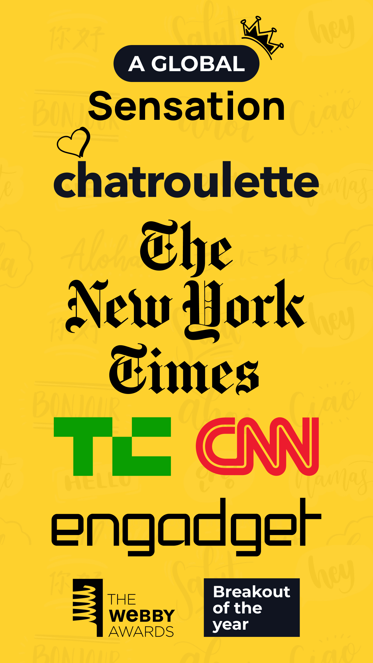 Chatroulette(包名:com.chatroulette.android)開發者是CR Services AG,Chatroulette的最新版本6.7.2更新時間為2026年03月31日。Chatroulette Random Video Chat的分類是社交。您可以查看Chatroulette Random Video Chat的開發者下的所有應用。目前這個應用免費。該應用可以從APKFab或Google Play下載到Android 8.0+。APKFab.com的所有APK/XAPK文檔都是原始文檔並且100%安全下載的資源。