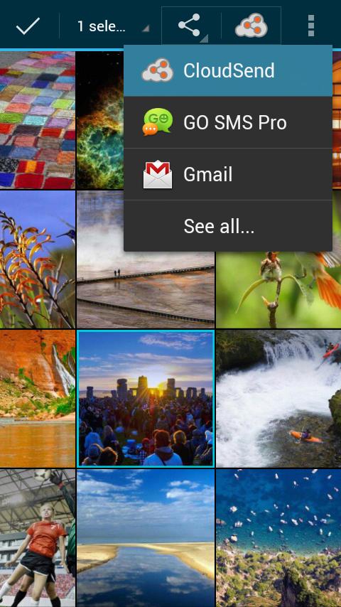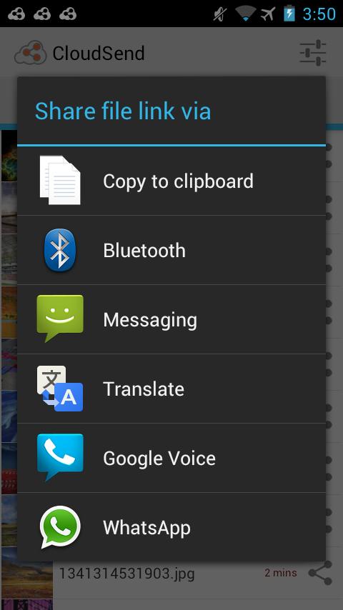 * CloudSend can share using any service. With CloudSend you aren't limited to just SMS, CloudSend ties-in to all text communication services on your phone.