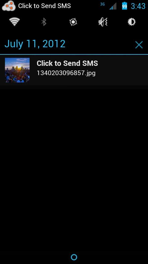 5.) Clicking this notification opens up a dialog with a plethora of options you can use to send the file, anything on your phone that can send text will work. For example: Text Messaging, Facebook, Whatsapp, Google Voice, Email