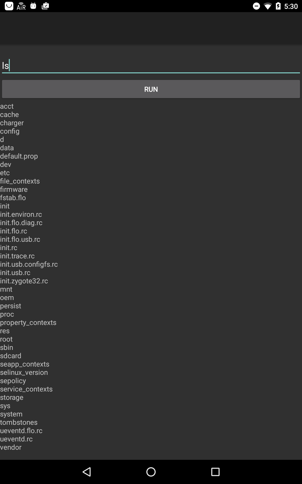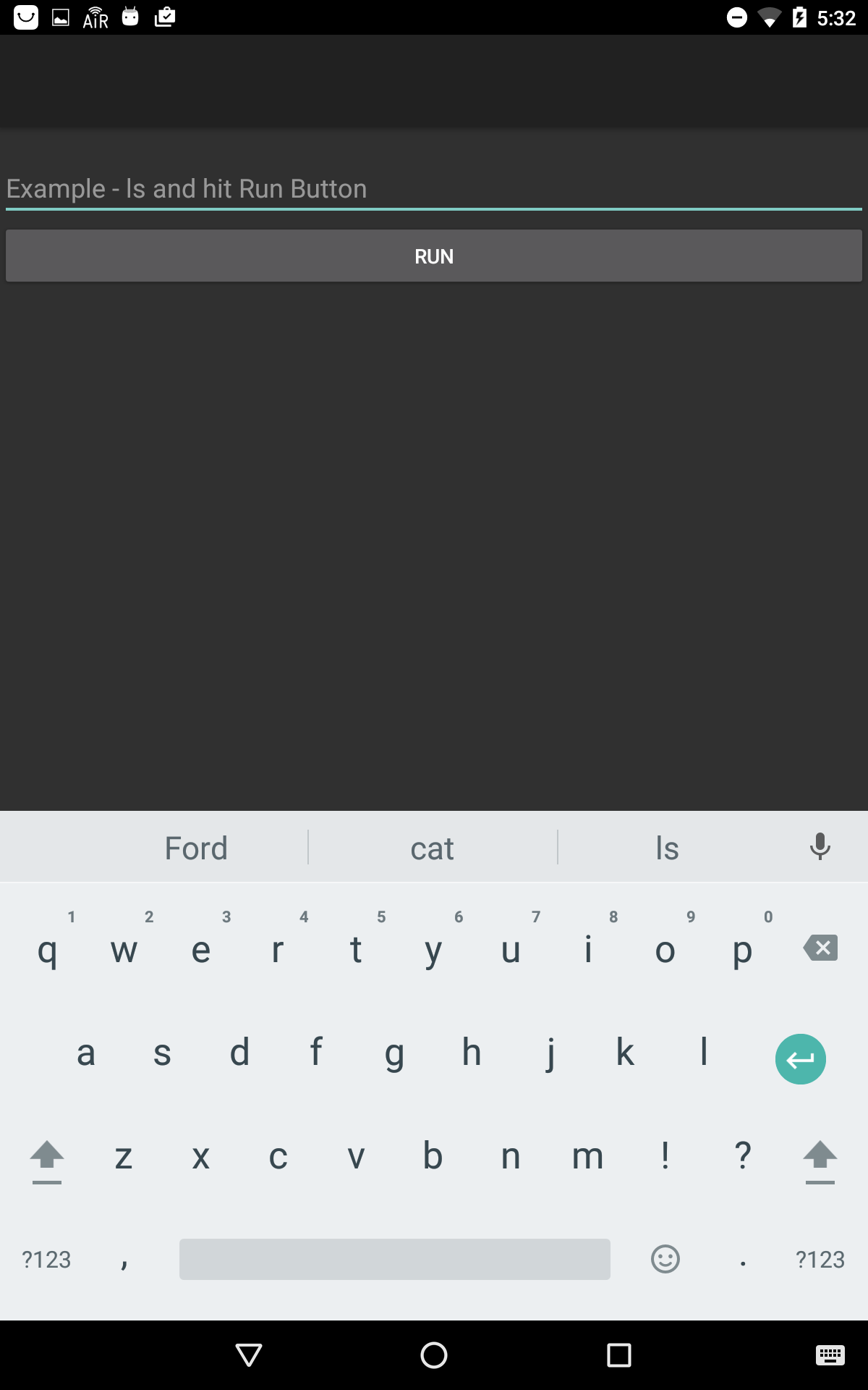 Command Line is a Tiny application to run system commands on Android Devices. This application has a very clean and fresh User Interface. Verison 1 (RC) This version is free and has no advertisements which would give you the best user experience as compared to the other applications. If you experience any issues or you think we could make this application better by adding some more features please drop us an email. We are always listening. Note* If you are planning to run advanced level system commands then you might have to root your device to get the expected results. Permissions* This Application does not require any specific permission to run like access to; - User data - User Location - Access to photos - Access to Call history - Access to messages Application is purely for running the system commands only.