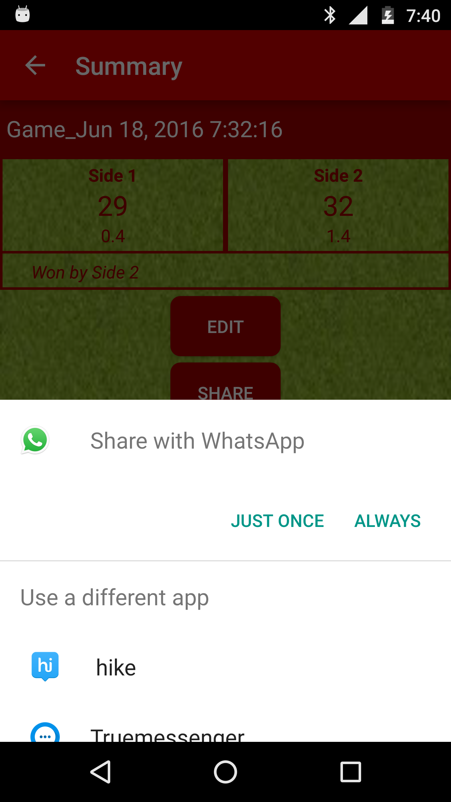 This app lets you count the score, keep track of wickets and overs effortlessly. This app is designed using the latest material theme, and has a friedly UI. Following are the list of things you can do using this app - Count cricket score, overs and wickets - Save the scorecard for future reference - Share the scorecard as an image using apps like Whatsapp Tags: cricket calculator, cricket scorer, cricket score counter, cricket score pad, score counting.