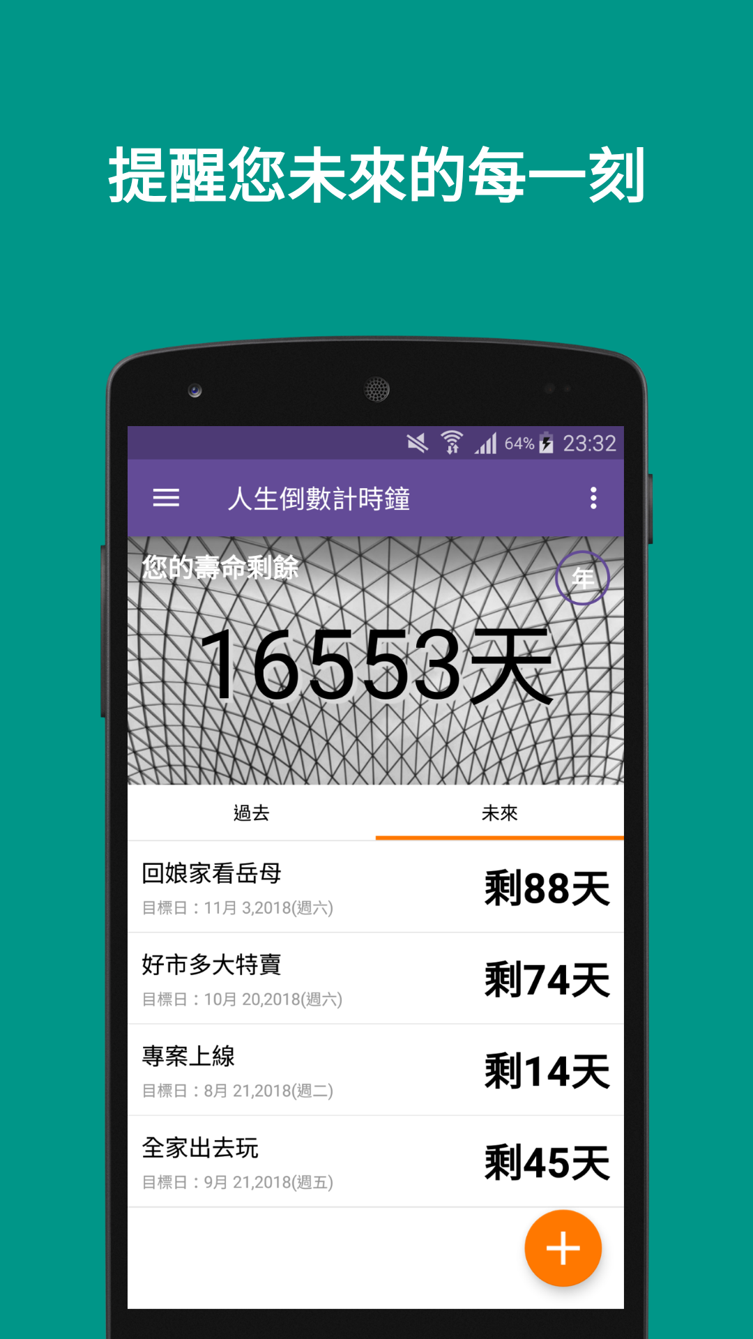 人生倒數計時器-行事曆、智能鬧鐘 、時鐘、人生規劃、時間