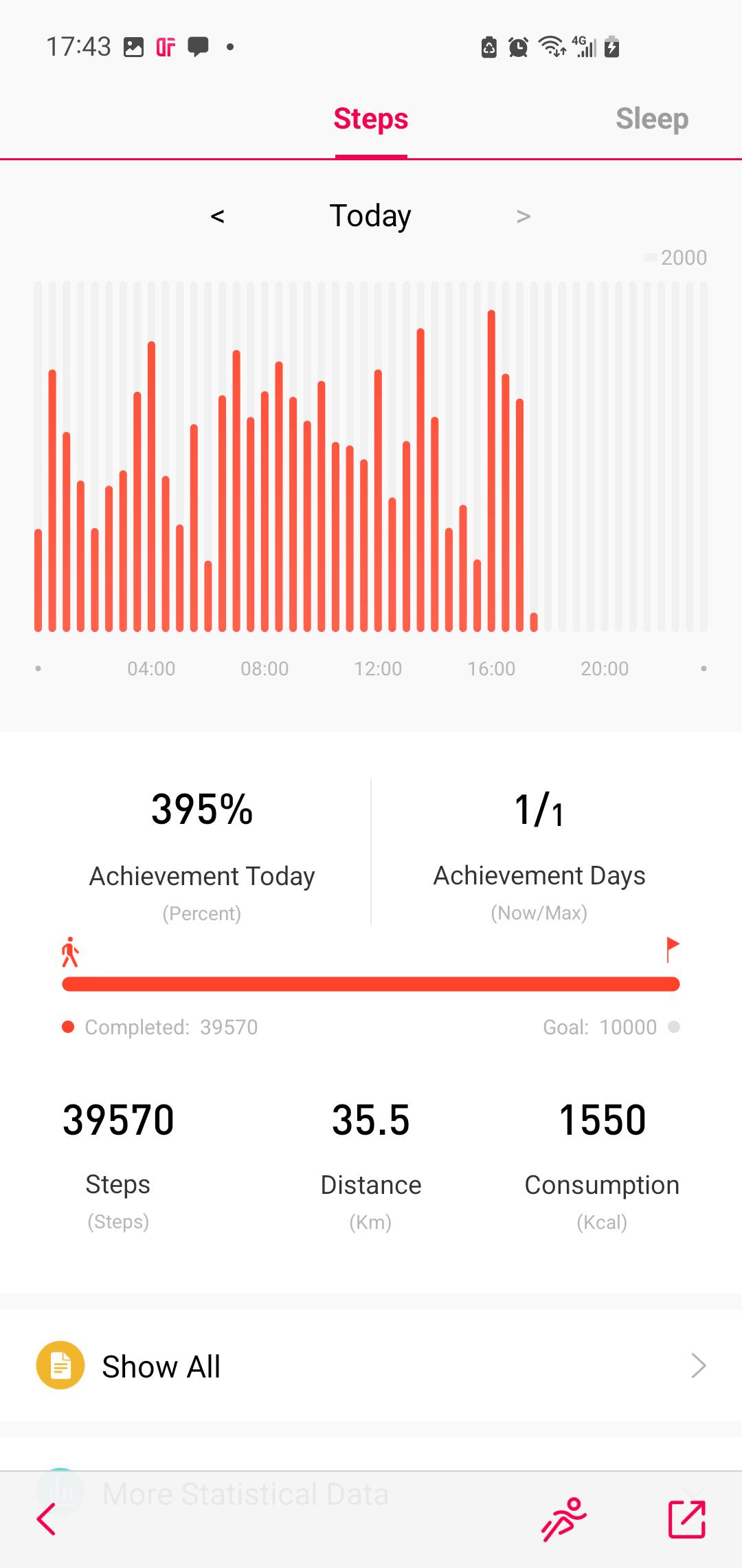 - Show 24-hour exercise data, and total data by week and month, and trend statistics graph accordingly.