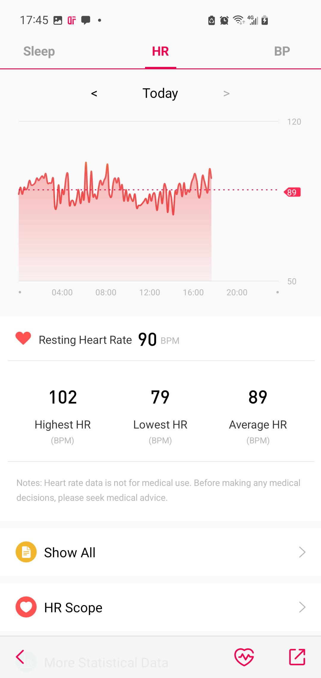 - Record daily actual data and scope about heart rate, list the top heart rate value, the lowest value, average data by day, week, month respectively.