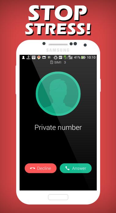 Detecteur de numero privé est une nouvelle application qui peut vous aider de connaitre les numeros privés des appelants Vous pouvez afficher n'importe quel numero entrant meme s'il est privé Afficher les numero prive avec toute simplicité et en un clin d'œil ******* Detecteur de numero privé : ★ nom de l'appelant se il existe des contacts ★ Si ne existe pas dans les contacts, appeler cet inconnu pour decouvrir numero prive ★ Parle contenu de SMS entrants privés ***** Caractéristiques de " afficher numéro appel privé " Facilement Personnalisez votre application afficher les appel inconnu ★ activer / désactiver affichage numero inconnu prive ★ Activer et désactiver les SMS Nom de l'expéditeur seulement ★ Activer / désactiver SMS nom et le contenu de l'expéditeur du SMS entrant même si privé ★ paramètres Sonneries ★ Pour le son, vous pouvez sélectionner n' importe quelle langue disponible sur le téléphone ou bien télécharger la voix de haute qualité ★ Réglages du volume et son. ★ Text-to-Speech Paramètres. ------------------------------------------------------------------------------------------------------------------------- Avec Detecteur de numero privé et inconnu vous pouvez simplement connaitre et découvrir les inconnus et les appels privés entrants. Merci de Télécharger l'application.
