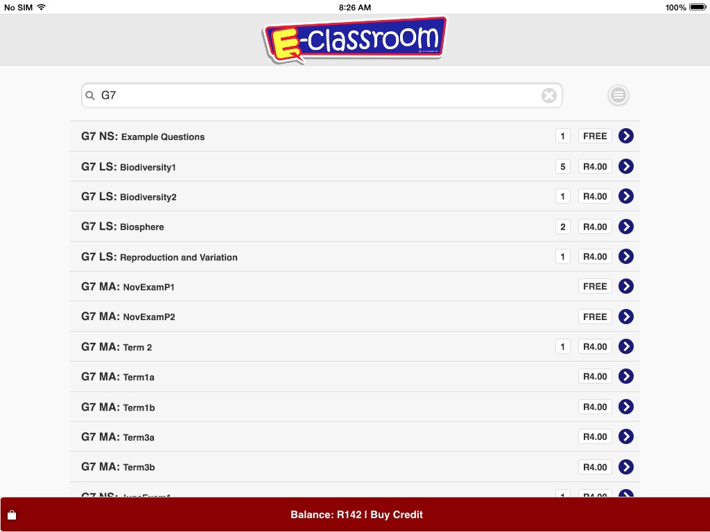 The Revision papers and Mock Exams are organised by grade and subject area. Other subjects will be offered in due course. Each Paper has approximately 20 Questions and costs R4.00 each with a minimum purchase requirement of R40.00.