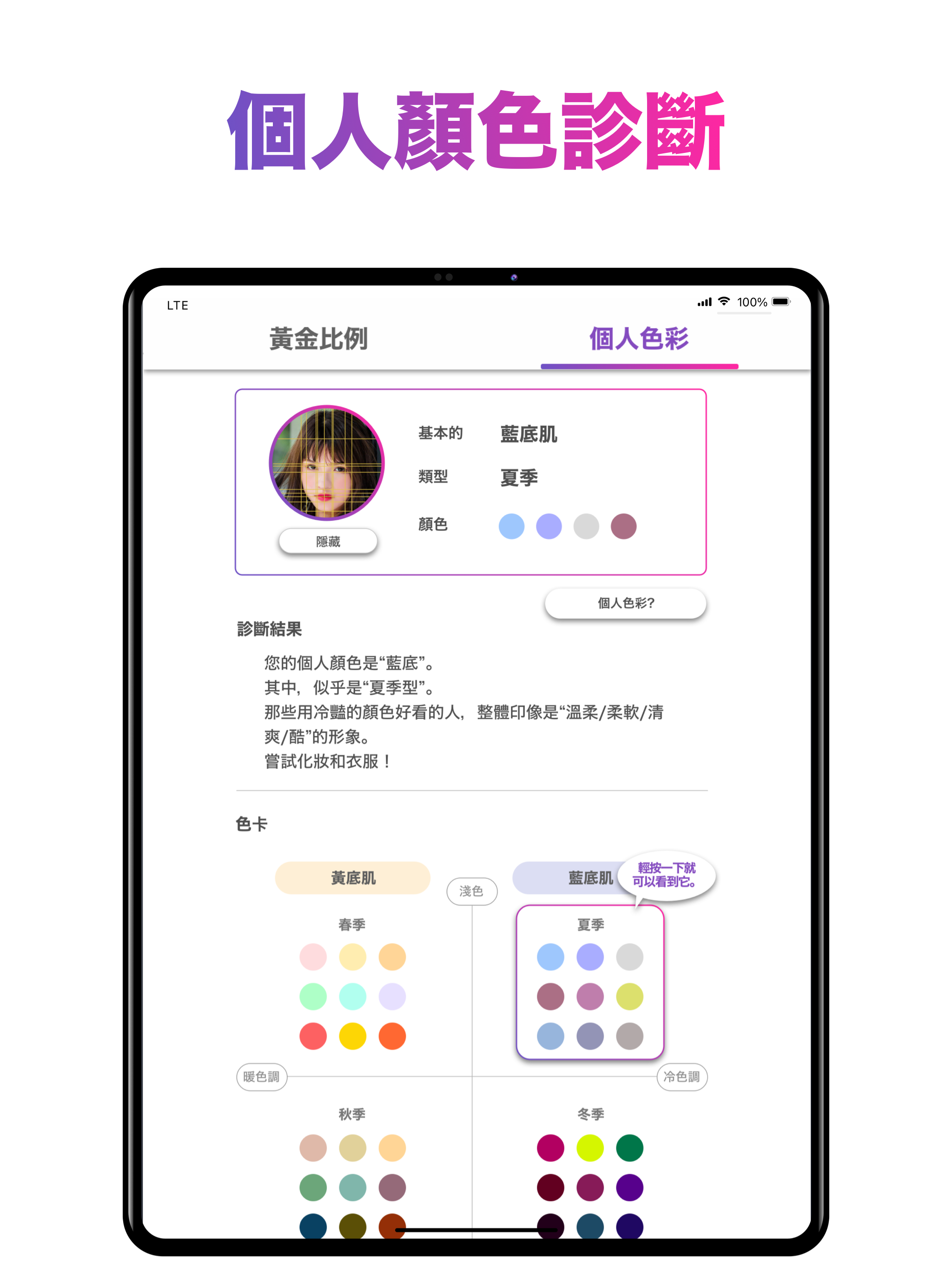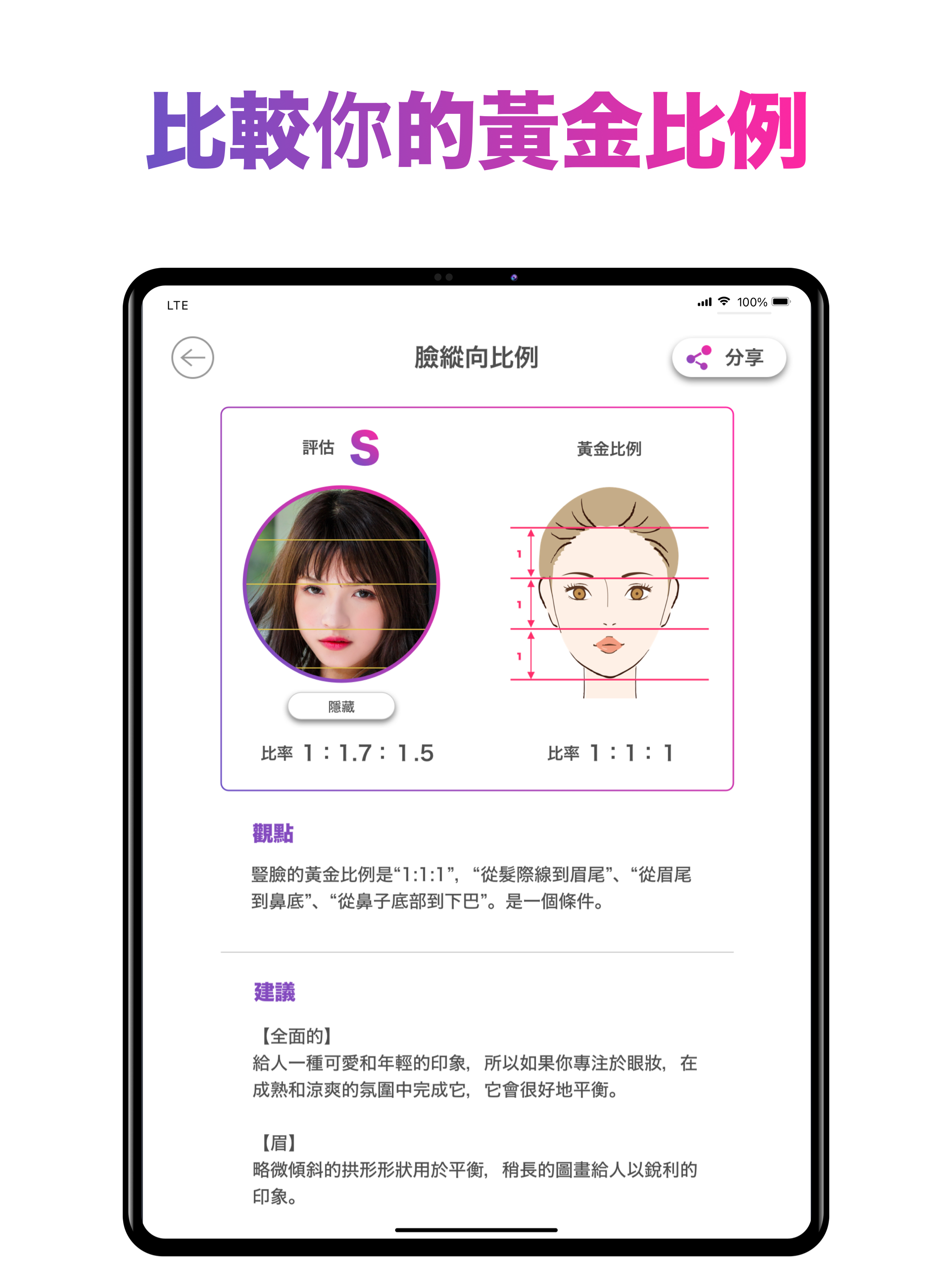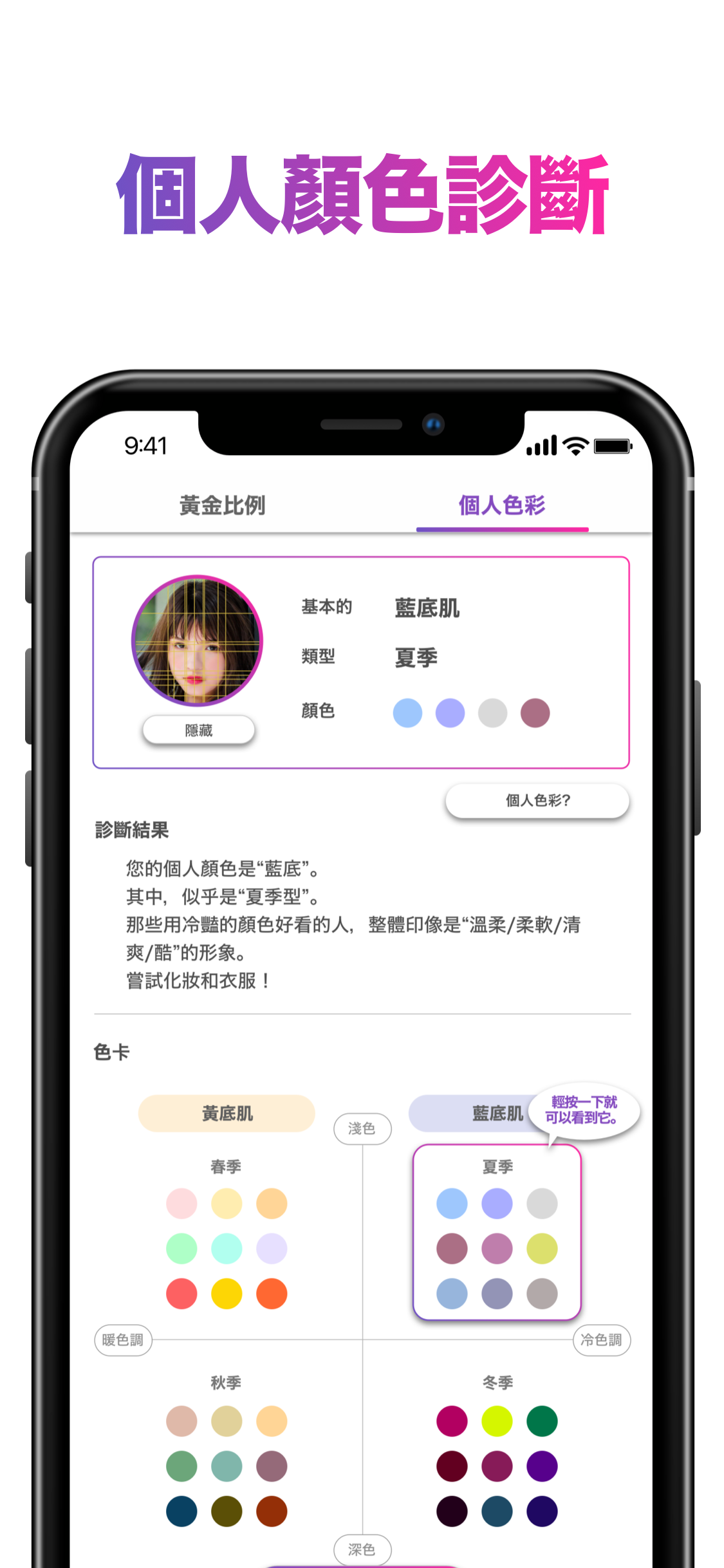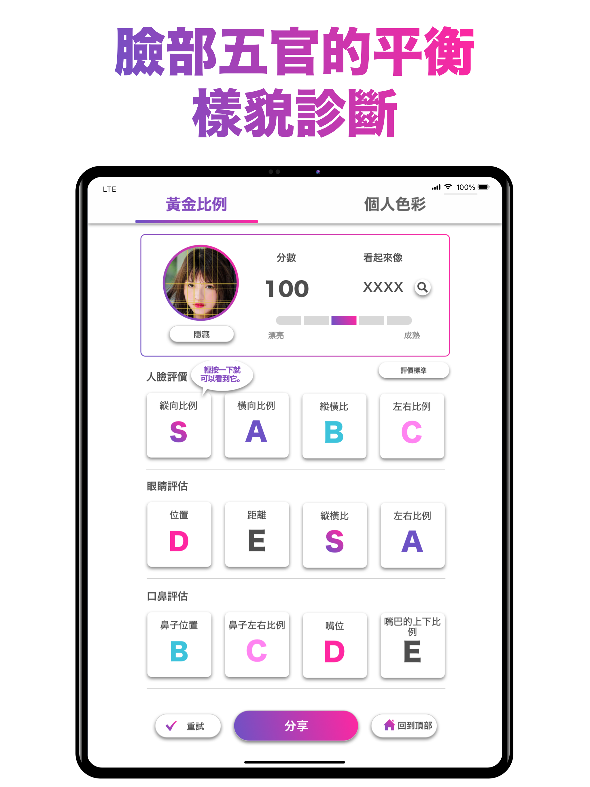 AI臉部平衡比例評分|臉型診斷與個人色彩 FaceScore