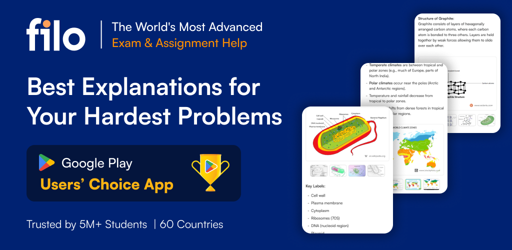 Learn concepts and solutions for physics, chemistry, mathematics, biology and English language Arts from grades 6th-12th. Filo can also help you get more advanced exam preparation help for SAT, ACT, AP, and GED tests and various other important exams 24X7.