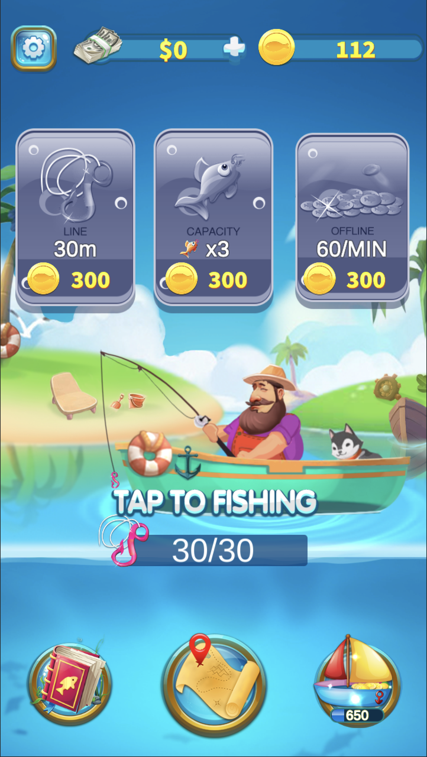 The old fisherman is ready to go fishing today. Have your boat and hook ready to show your fishing skills. Throw your hooks, catch as many fish as you can, and earn more coins to upgrade your hooks and ships. Be the best fisherman. Remember, don't be soft when you encounter a Dollar Fish- a fish with true dollar. Find the right time to catch it. It can bring you real dollars. Come and go fishing now!