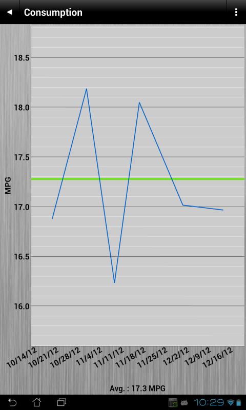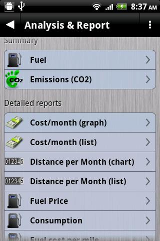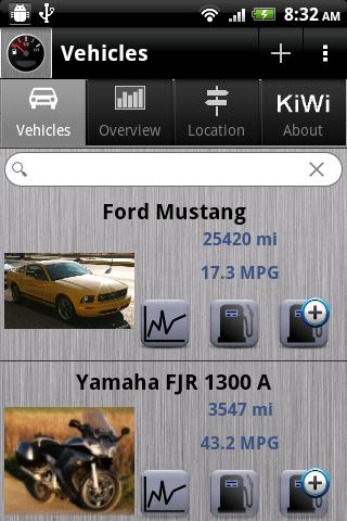 For each vehicle, input your fill-ups in a matter of seconds, and keep track of the evolution of several parameters in different ways (overview, graphs or lists):