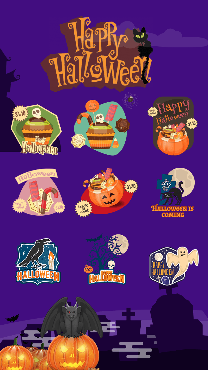 This fancy and cute Halloween Sticker set is a more funny and expressive way to chat with your friends.