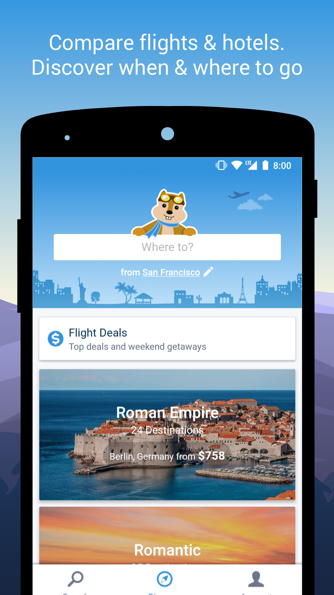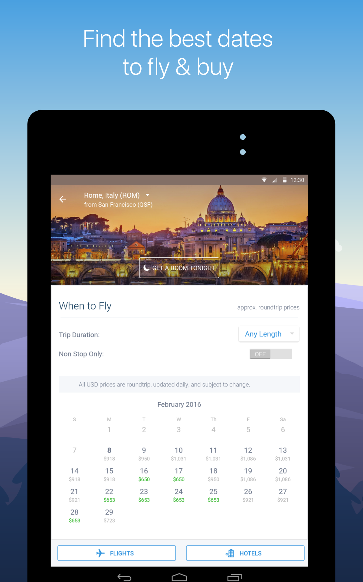 Hipmunk’s hotels are shown on a map so you can see exactly where you'll be staying. You can also read TripAdvisor reviews in the app and turn on heatmaps to see which are the best areas to stay in based on unique interests like food, landmarks, nightlife and more. Plus, save up to 60% off with new Tonight Deals on hotels worldwide.