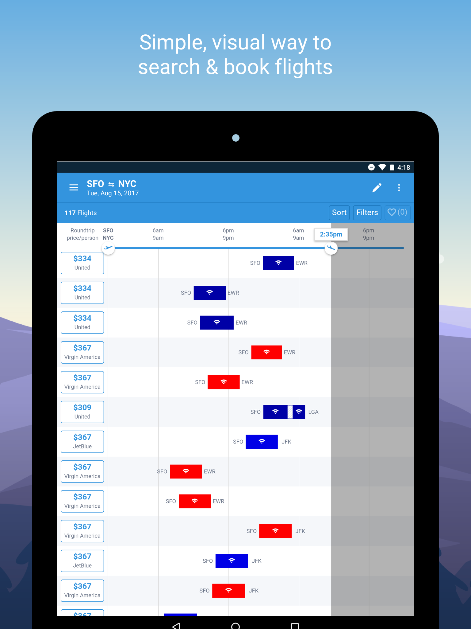 • Unique layout makes it easy to find flights with Wi-Fi