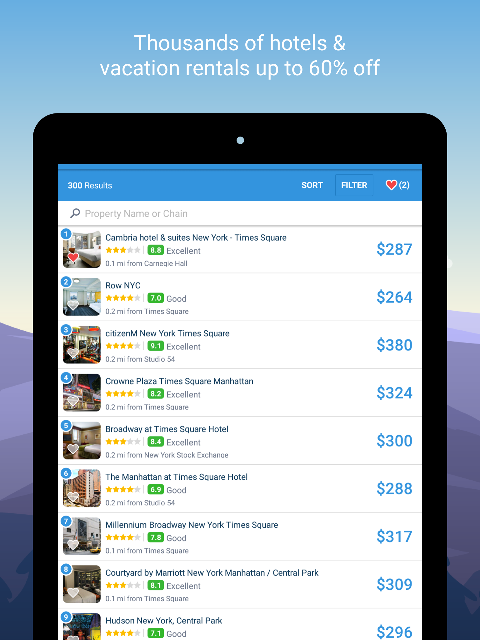 • COMPARE and book hotels, Airbnb rentals, hostels and HomeAway rentals