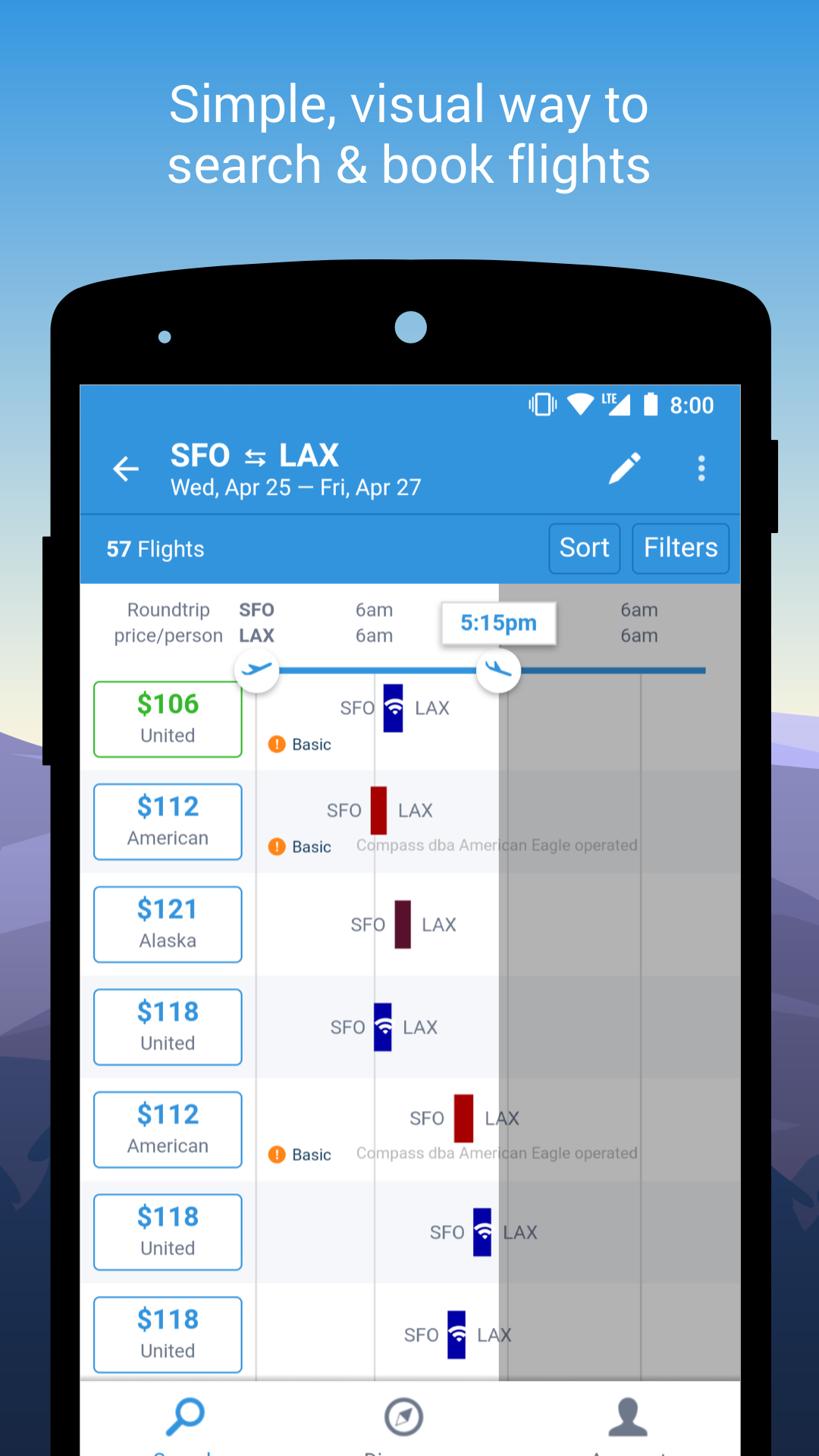 • See flights sorted by “agony” to SAVE TIME by minimizing duration, layovers and price