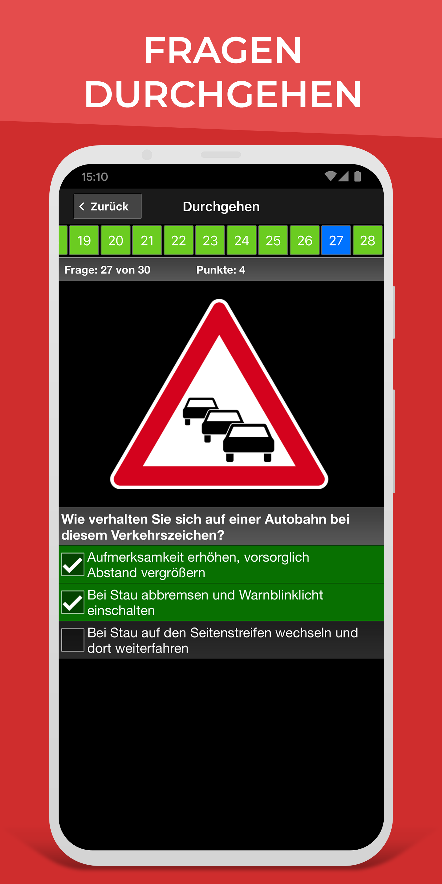 - 考試模擬100% 真實的考試狀況,為理論駕駛考試做好最佳準備。最後,您可以檢查錯誤並再次進行測試。