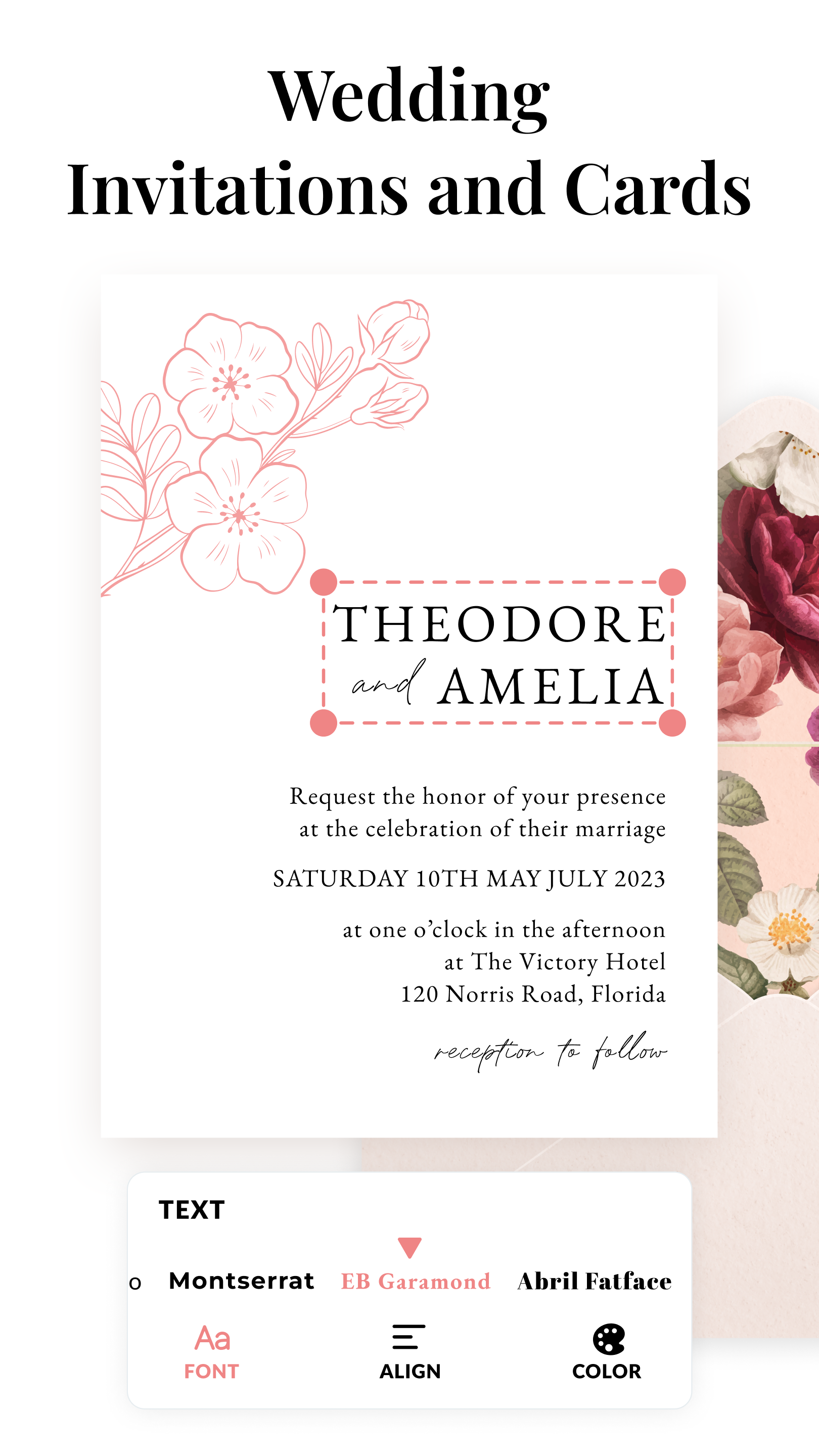 使用我們的invite maker,為任何場合製作獨特的虛擬婚禮請柬、生日請柬或賀卡。通過電子郵件、信使發送數字邀請,或直接打印。