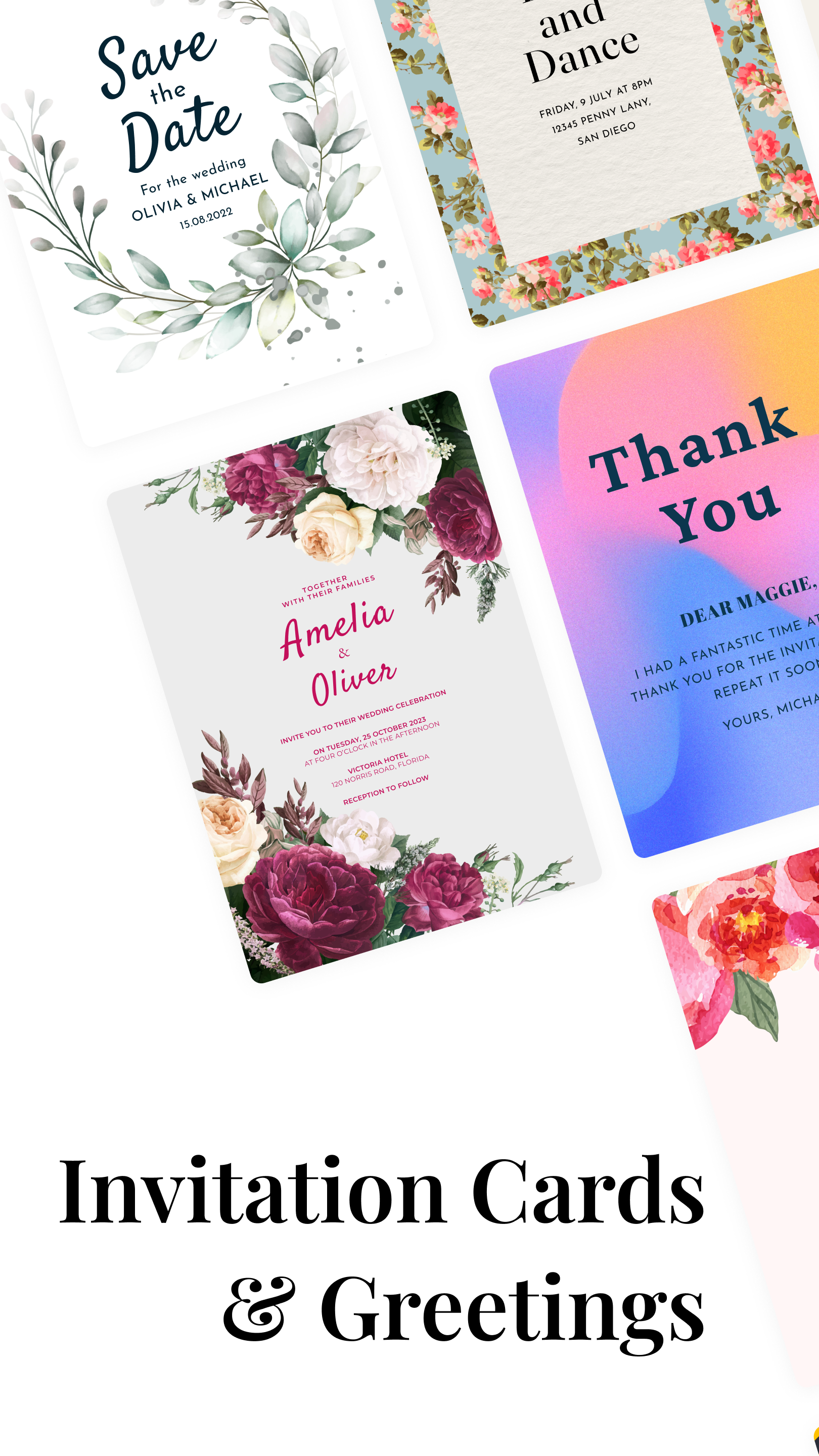 保持聯繫以獲取新的新鮮內容並使用 Invito:Invitation Maker 和 Greeting eCards 應用程序讓您的朋友驚嘆不已。