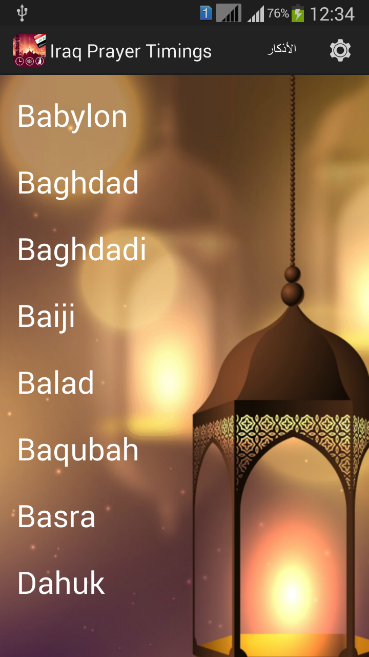 تطبيق مجاني يضم إلى جانب أوقات الصلاة في العراق، بعض الأدعية والأحاديث النبوية الشريفة والمقولات اليومية المتنوعة مواقيت الصلاة في العراق أو مواقيت الصلاة في العراق تطبيق و برنامج جديد يساعد مستعملي هواتف الاندرويد على تذكر اوقات الصلاة في العراق , مواعيد الاذان يمنحك العديد من المزايا فهو اول تطبيق مواقيت الصلاة في العراق أو مواقيت الصلاة في العراق و مواقيت الصلاة في بغداد حيت يعطيك اذان في العراق و في جميع مدن , اوقات الصلاة في العراق مضبوطة يوفر هذا التطبيق مواقيت الصلاة اليومية لدولة العراق الى جانب الميزات أدناه : الإمساك، الفجر، الشروق، الظهر، العصر، المغرب والعشاء إضهار بعض الأدعية وبعض الأدكار مشاركة مواقيت الصلاة مع أصدقائك تذكير يومي / التنبيه للصلاة عن طريف رفع الأذان بأصوات رائعة تغيير صوت الآذان التحكم بالاشعارات توفير 22 من أصوات الأذان يمكن للمستخدمين الاستماع إلى النشيد أثناء استخدام التطبيق. هذا و يمكن تعطيله باستخدام في الإعدادات من بين المدن التي يتيحها تطبيق أوقات الصلاة في العراق : الدور عفك العوجا الديوانية الحلة القائم العمارة الرطبة أربيل بغداد بيجي بلد بعقوبة البصرة دهوك الفلوجة حديثة حلبجة هيت الإسكندرية كربلاء خانقين كركوك الكوت الموصل المقدادية النجف الناصرية الرمادي سامراء السماوة الشامية السليمانية لتاجي تلعفر تل كيف تكريت أم قصر زاخو الزبير