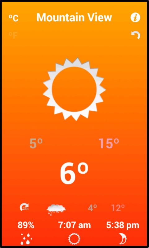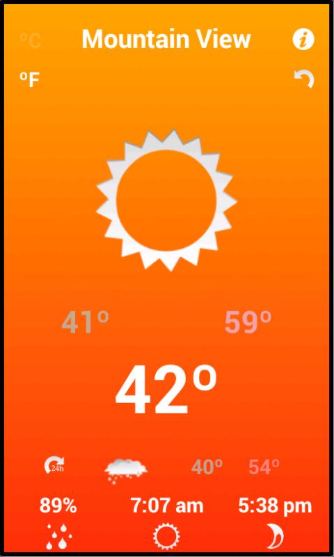 Check the weather conditions in an instant through a simple interface, powerful and accurate. Please, report if the app crashes! Note: "Use wireless networks" must be activated in "Location & security settings".