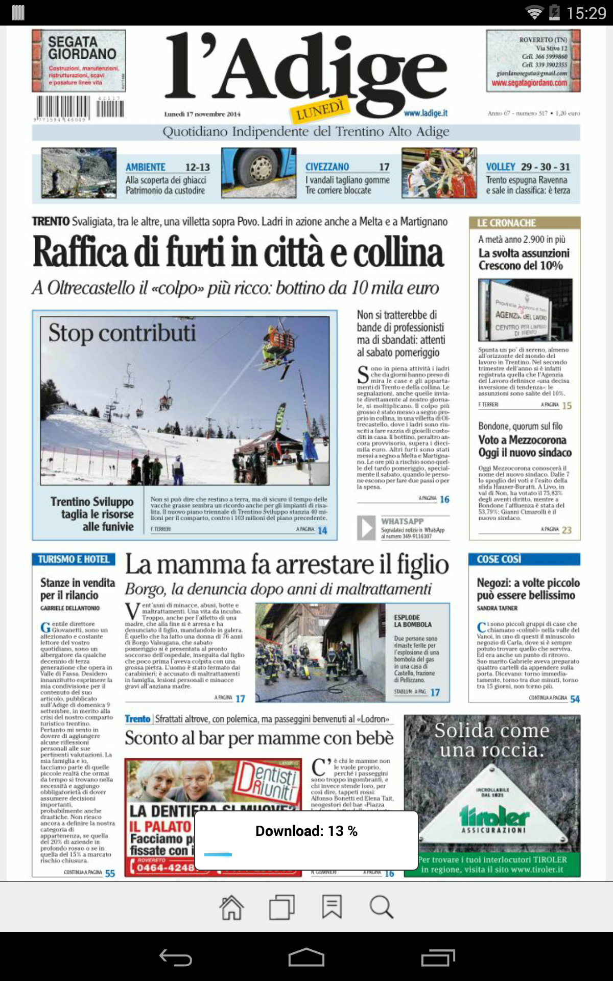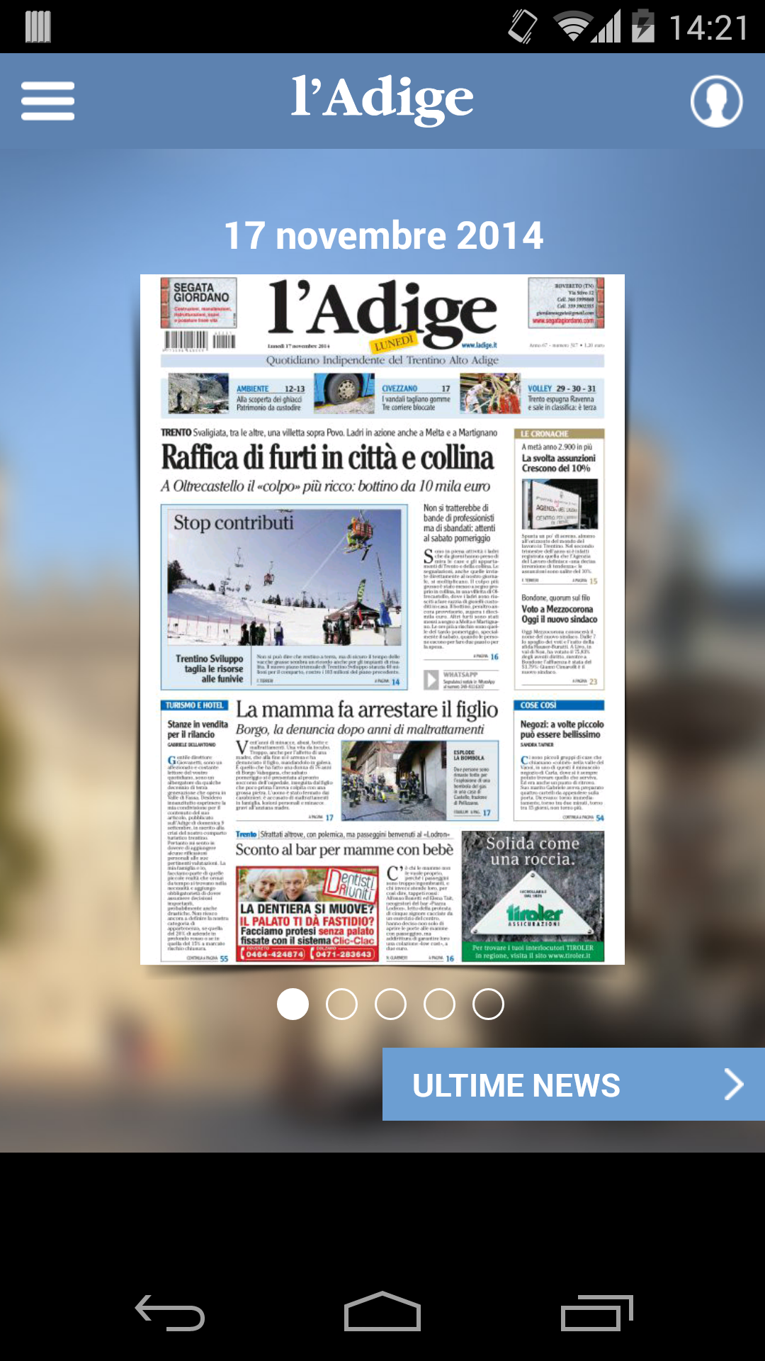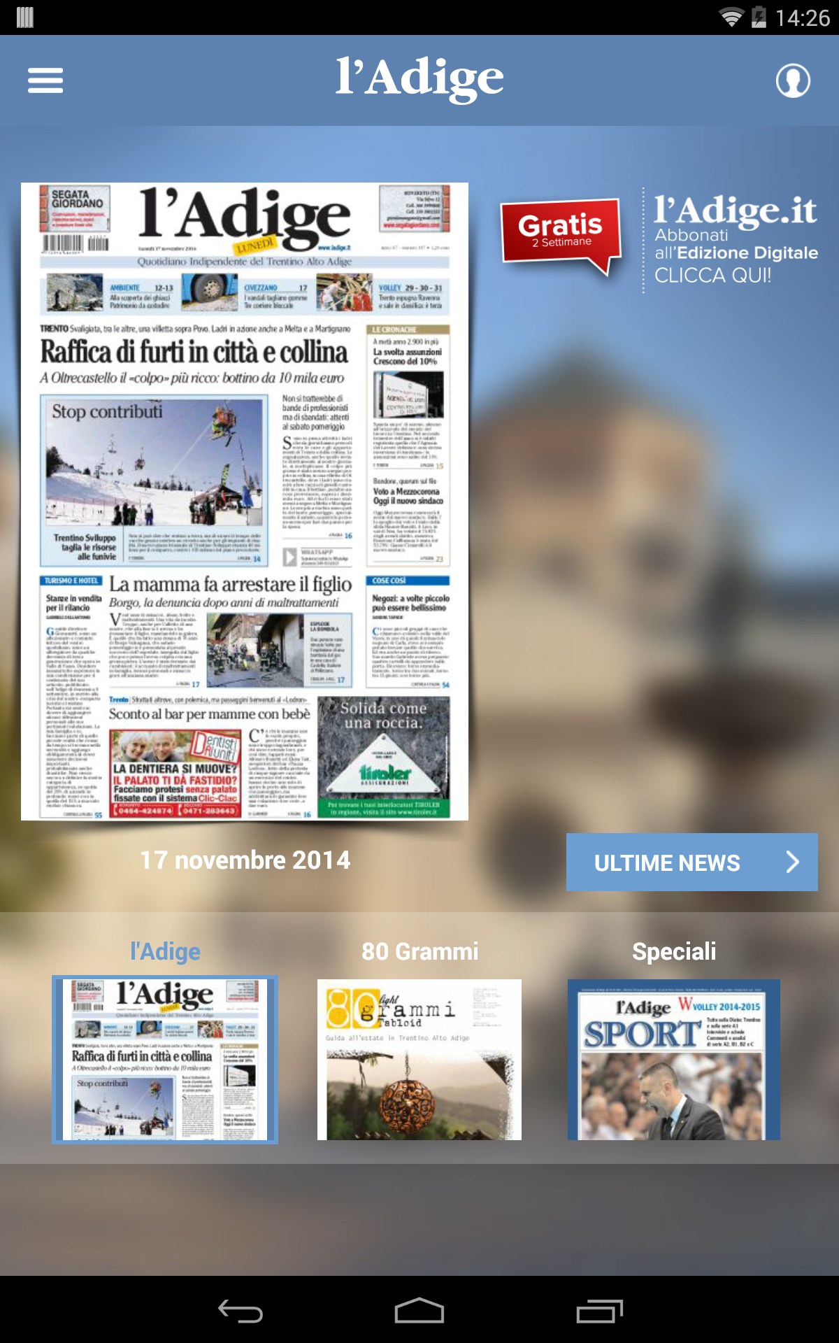 l'Adige è l’applicazione che ti consente di leggere il tuo giornale e di rimanere sempre aggiornato sulle ultime notizie grazie alla nuova sezione “ultime news”, costantemente aggiornata dalla nostra redazione.