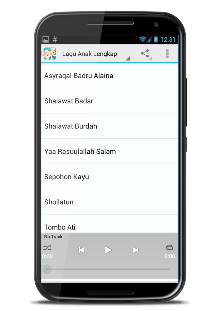 Memberikan pendidikan agama islam bagi anak sejak dini sangatlah penting. Ada berbagai media belajar anak untuk mengenal agama dan tuhannya. Salah satunya adalah melalui lagu anak muslim dan doa harian. Berangkat dari hal teresebut kami hadirkan aplikasi lagu anak muslim dan doa harian anak muslim. Aplikasi ini berisikan puluhan lagu pilihan bertemakan agama islam dan puluhan doa harian mulai dari bangun tidur hingga tidur kembali. Berikut contoh beberapa judul lagu yang ada: 25 nabi Aa Ba Ta Anak Solehah Baju Baru Batalnya Whudu Doa Mau Tidur Guruku Tercinta Malaikat Arabic Alphabet Rukun Iman Sebatang Pohon Selamat Lebaran Sholatlah Sebelum Disholatkan Sifat Wajib Bagi Utusan - Rhamadan Aswi Surga Di Telapak Kaki Ibu Taubat - Mu ad Tombo Ati Tuntutlah Ilmu - Mentari Wali Songo - Ayu Adisty Ya Nabi Alangkah Indahnya Asmaul Husna Magadir Maha Melihat Mayjuz Wahdana Berikut contoh beberapa doa harian anak yang ada dalam aplikasi ini: Doa Anak Sholeh Doa Bangun Tidur Doa Bercermin Doa Berpakaian Doa Keluar Kamar Mandi Doa Keluar Masjid Doa Masuk Kamar Mandi Doa Masuk Masjid Doa Mau Makan Doa Memulai Pekerjaan Doa Naik Kendaraan Doa sebelum Makan Doa Sebelum Tidur Doa Sesudah Adzan Doa Sesudah Makan Doa Sesudah tidur Fitur aplikasi ini: - Bisa dioperasikan secara online maupun offline - Kualitas suara dar lagu dan doa anak sangat jelas sehingga mudah diikuti anak dirumah - Desain aplikasi sangat menarik dan jelas sehingga memudahkan untuk digunakan oleh siapapun termasuk anak kecil. - fitur loop, repeat, share, set as ringtone, dan lain-lain. Tunggu apa lagi silahkan dicoba aplikasi lagu anak muslim dan doa harian ini. Semoga bermanfaat.