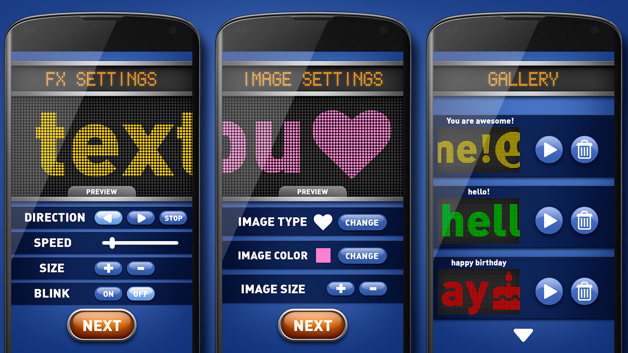Led panel allows you to simulate an led banner to display messages to your friends, personalized advertisements, communicate news in a creative way and original and even create free ads as if it were a true display of advertising.
