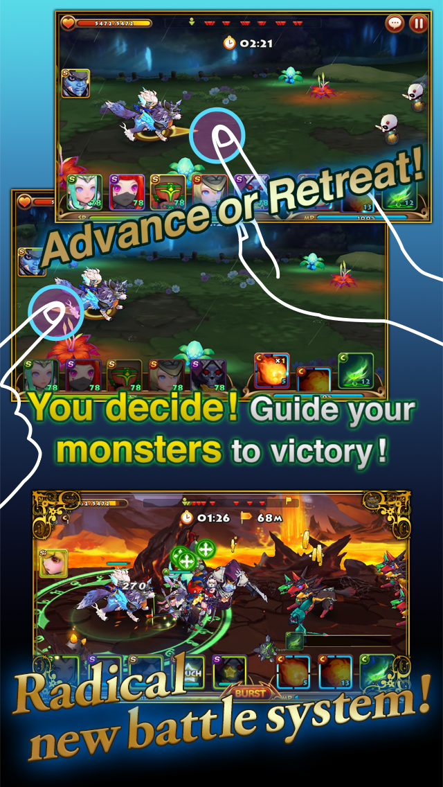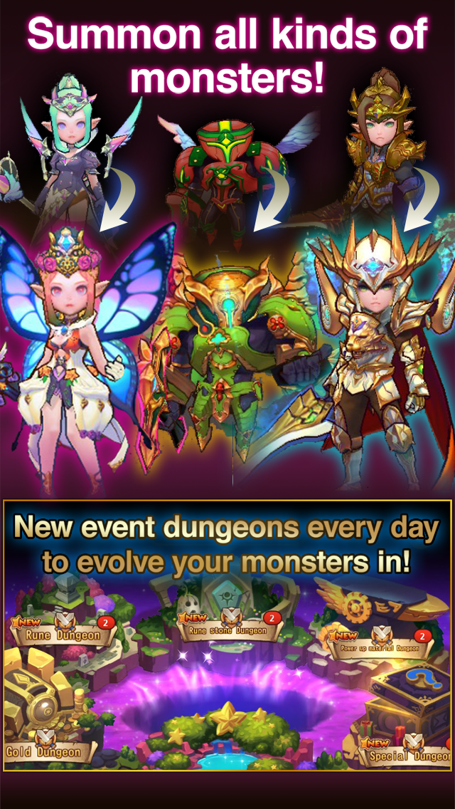 100種以上的英雄技能與200種以上的召喚獸,加上「強化」、「進化」等成長系統,融合出千變萬化的遊戲樂趣!