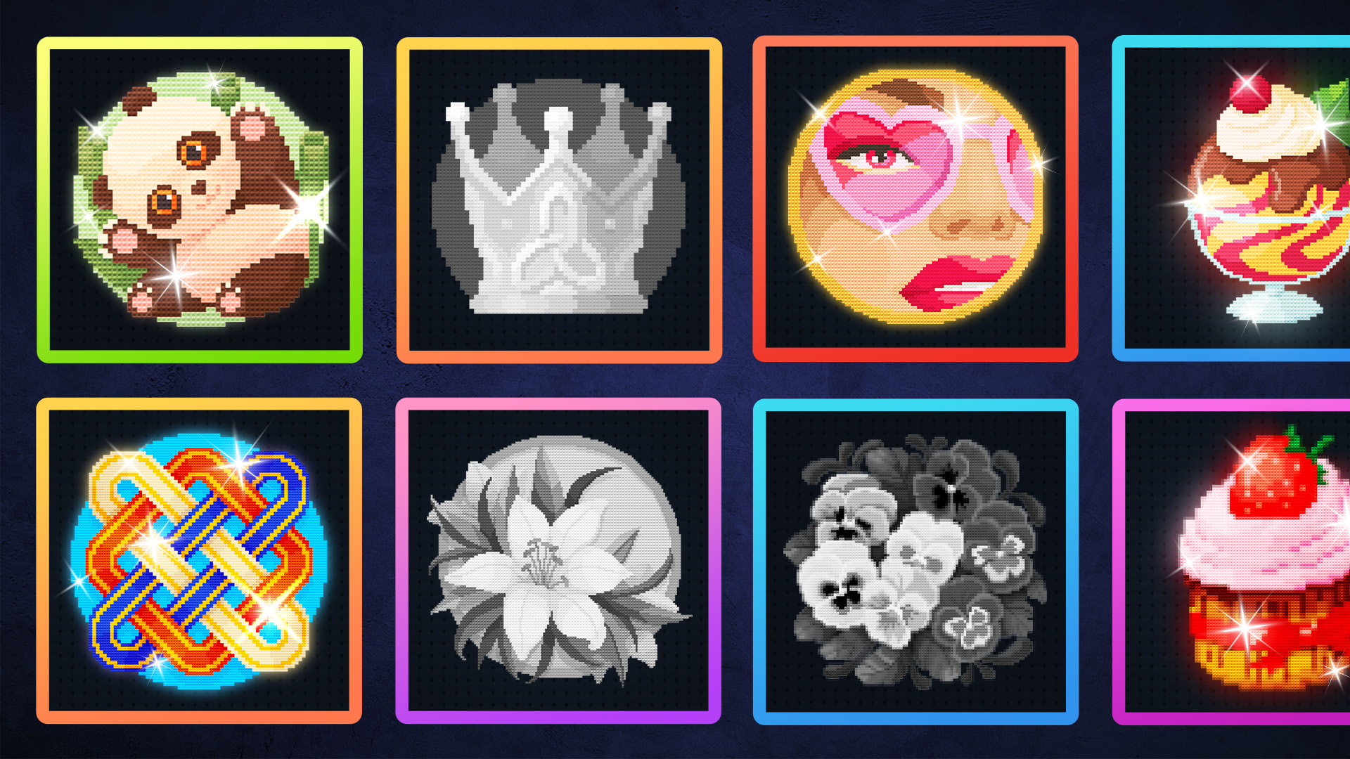 盡情在這個五彩斑斕的鑽石舒壓遊戲中自由暢玩,用閃亮的塗色畫板開始美好的一天!一起來遊玩鑽石繪畫數字填色遊戲吧!