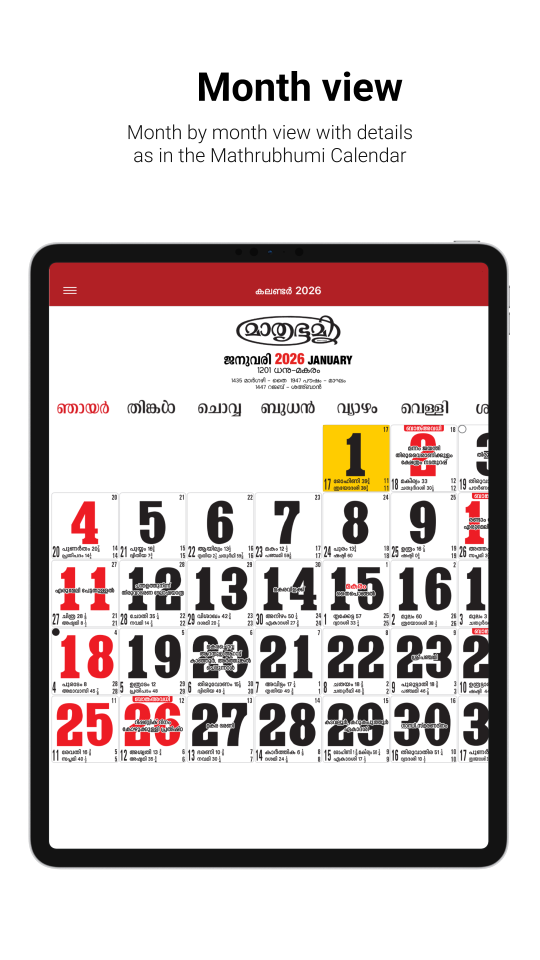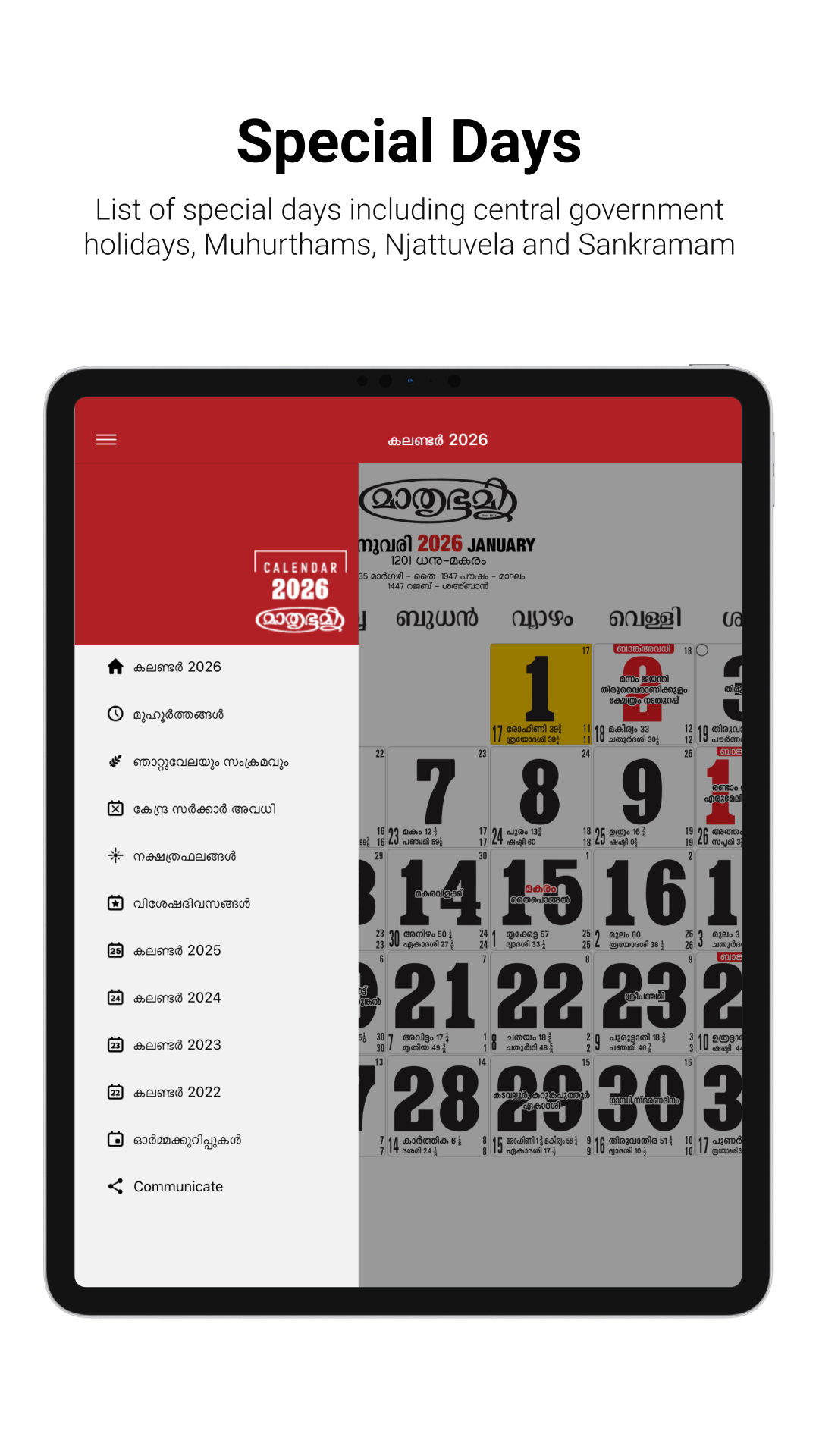 Mathrubhumi Calendar 2026