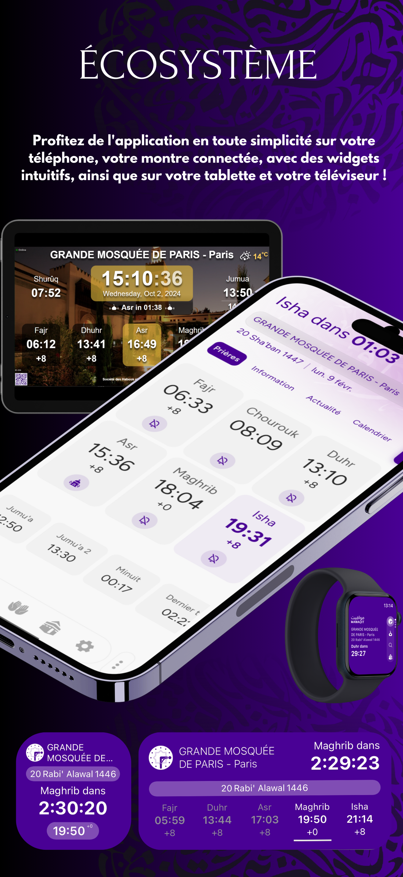 🕌✨🌙 Mise à jour Ramadan V4 Nouveau design + bouton latéral (changer de vues, personnaliser) Mawaqit 360 : thèmes météo + couleurs de calendrier Vue en grille : horaires nocturnes (minuit + dernier tiers) Coran : Mushaf Tajwid, copie des versets avec traduction, mieux sur pliables Live Activities iOS : prière & iqama Lecteur YouTube amélioré