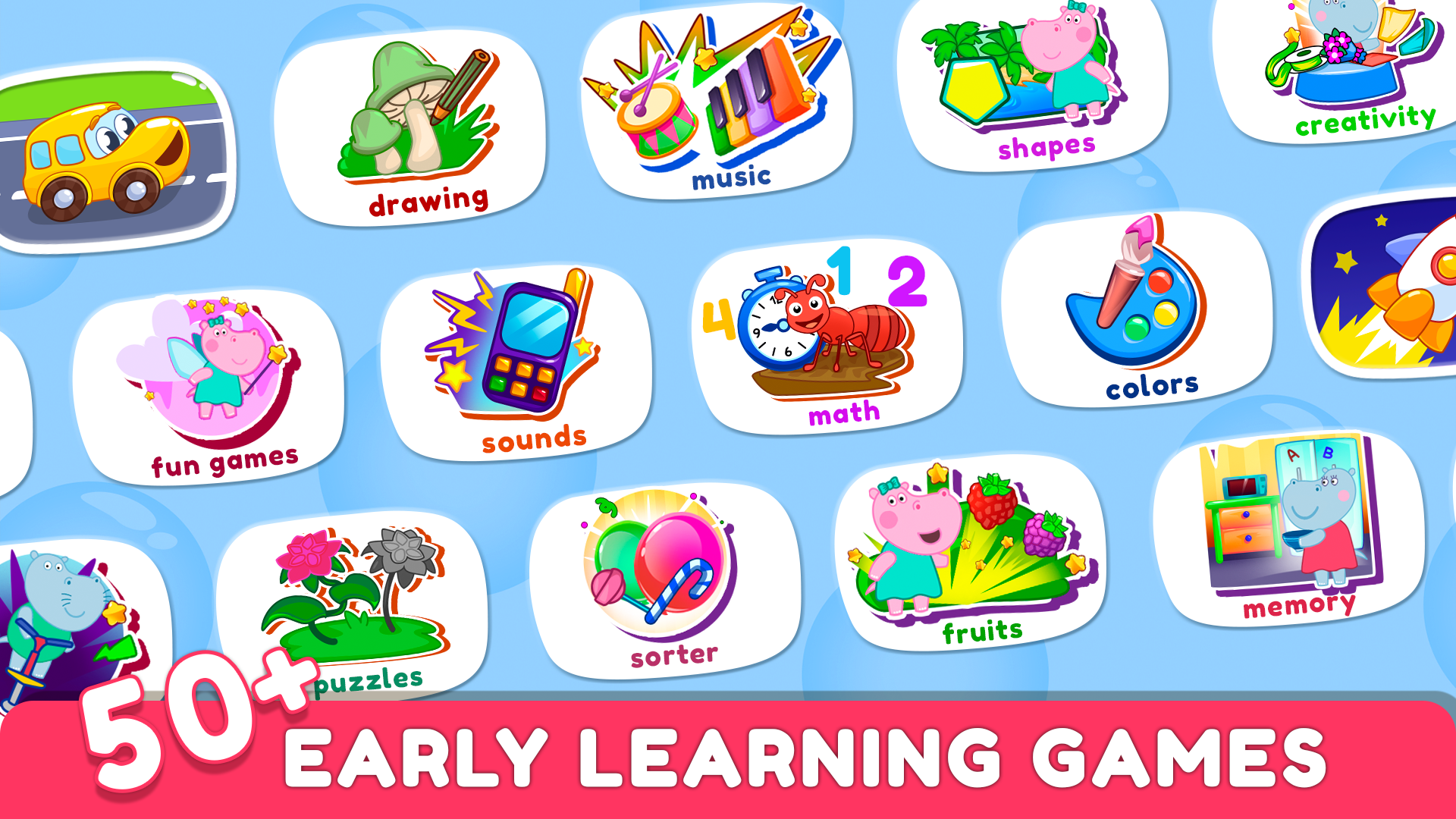 Educational games for toddlers. Learn and play new educational kids games with Hippo.
