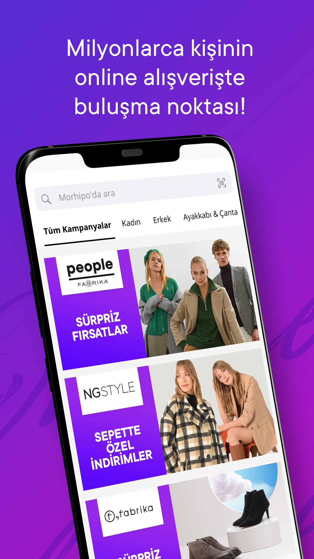 Morhipo.com'un mobil uygulamasıyla her an her yerde en sevdiğiniz markaların kampanya fırsatlarını takip etmek ve istediğiniz ürünü satın almak çok hızlı ve kolay。 Giyimden dekorasyona, elektronikten kozmetiğe, anne bebek çocuk ürünlerinden spor giyime kadar yüzlerce marka ve binlerce ürün mobil uygulamamızda hepsi burada sizi bekliyor。 Moda ve Trend artık cebinizde, mobil uygulamaya özel fırsatlarla!