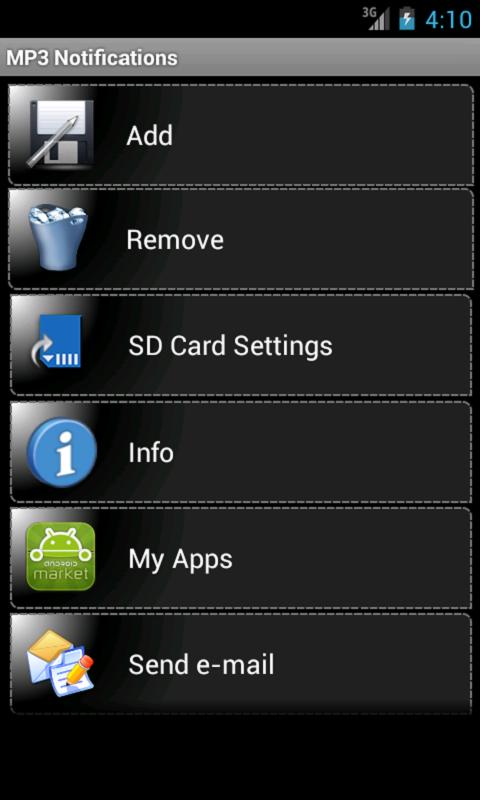 Questa applicazione consente di aggiungere/rimuovere brani mp3 come suonerie chiamate e suoni di notifica (es.: SMS).