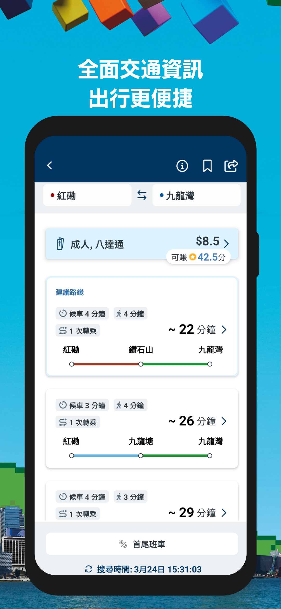 一站式點到點路線查詢服務(公共交通、公交、駕車、步行、實時交通、交通消息、巴士、港鐵、小巴、船、的士、邨巴、停車場、車位、咪錶)