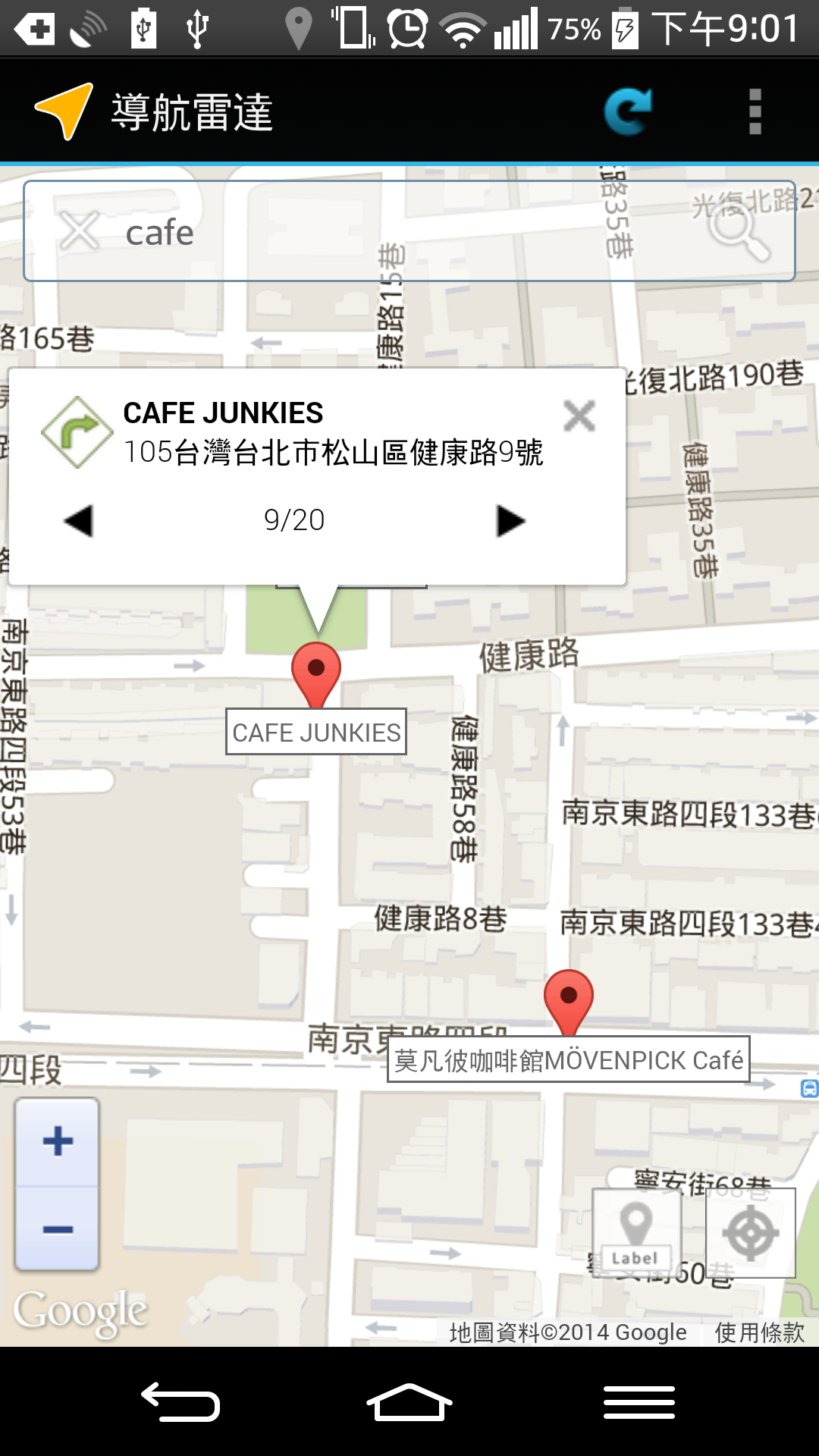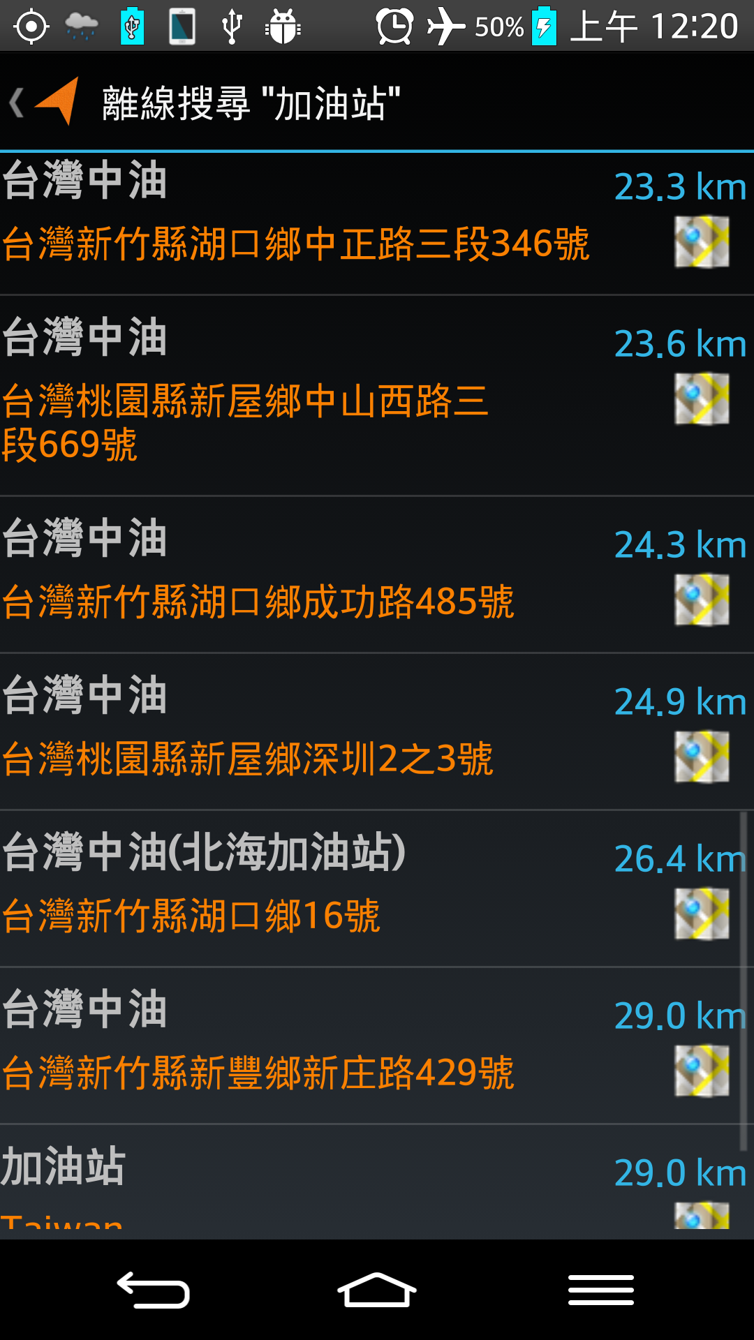 8.附近位置關鍵字搜尋,例如搜尋 加油站、ATM、便利商店。