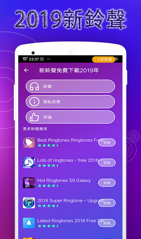 此應用是2019年鈴聲最多歌曲最全的鈴聲應用,免費音樂,熱門鈴聲,DJ搖滾歌曲全部免費下載